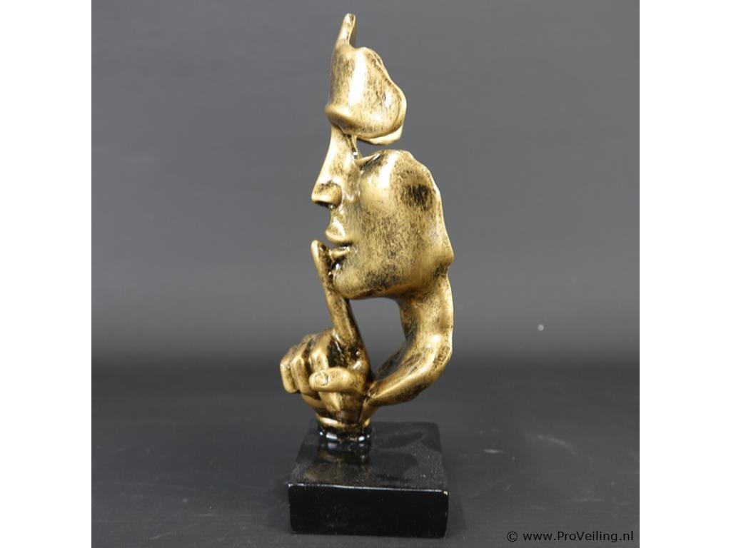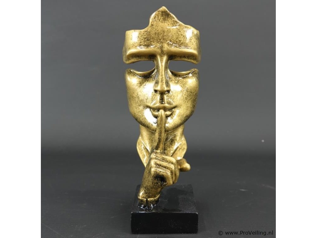 Sculptuur "Silence". Resin op steen. H23cm/320Gr. Dit betreft een tijdens transport kwetsbaar product! Uw transportrisico voor deze kavel is zeker in combinatie met andere kavels hoog. Lees daarom a.u.b. ook de extra veilinginformatie voor deze veiling!.