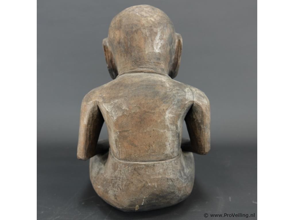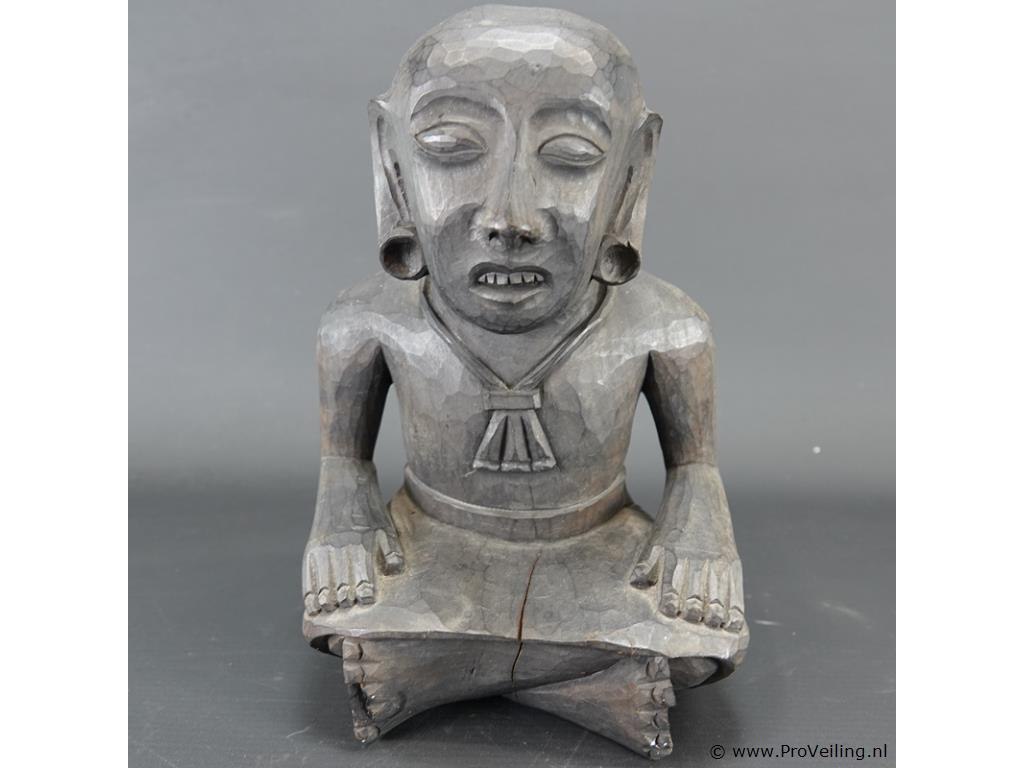 In hout gesneden oosters beeld van een zittende figuur