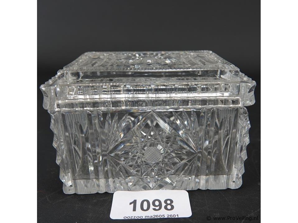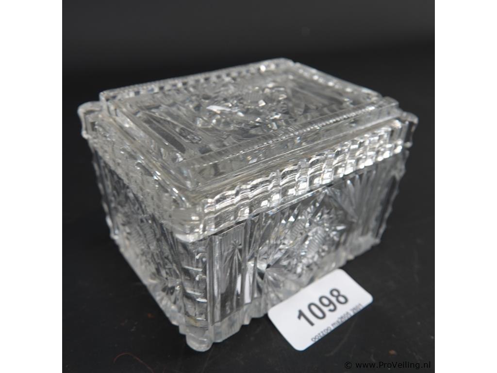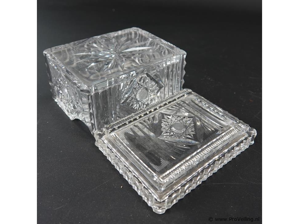 Schade onder deksel. H8cm/L12cm/B10cm/842Gr. Dit betreft een tijdens transport kwetsbaar product! Uw transportrisico voor deze kavel is zeker in combinatie met andere kavels hoog. Lees daarom a.u.b. ook de extra veilinginformatie voor deze veiling!.