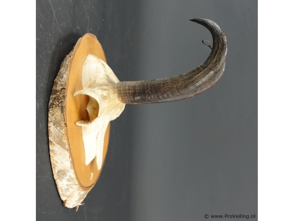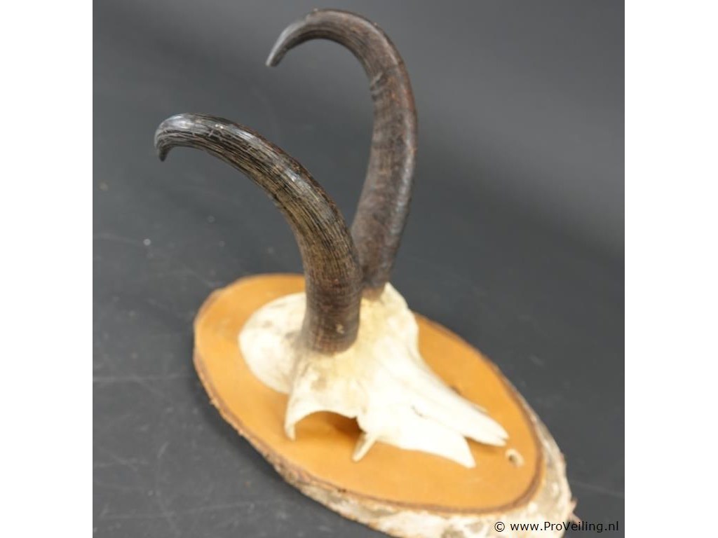Gewei van een gemsbok op houten schild