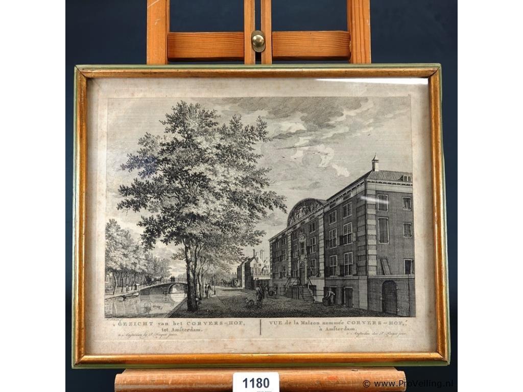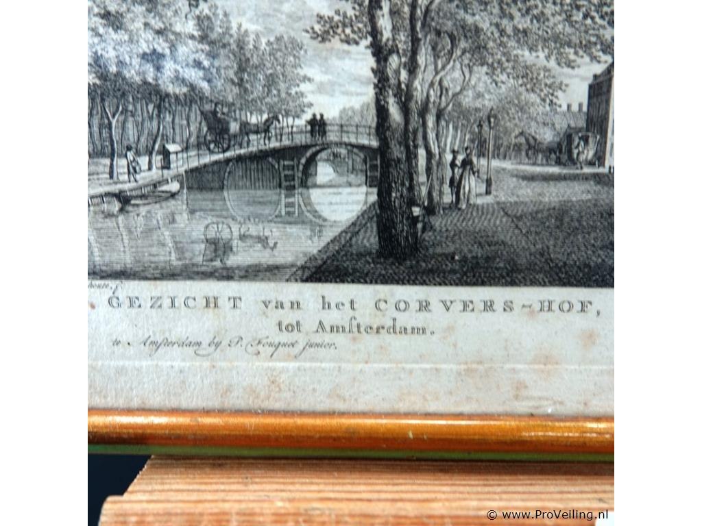 Oude druk gezicht van het corvers-hof tot amsterdam