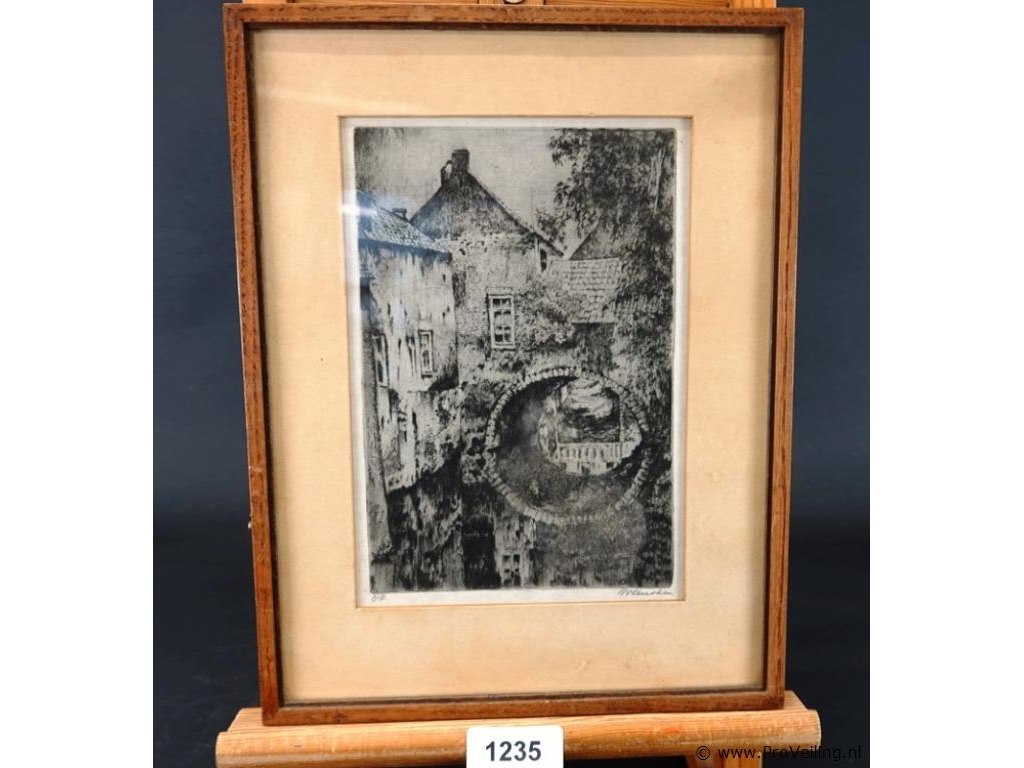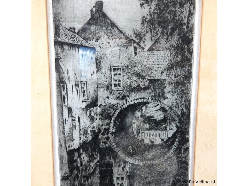 In passe-partout, achter glas en in houten lijst. H34cm/B26cm/708Gr. Dit betreft een tijdens transport kwetsbaar product! Uw transportrisico voor deze kavel is zeker in combinatie met andere kavels hoog. Lees daarom a.u.b. ook de extra veilinginformatie voor deze veiling!.