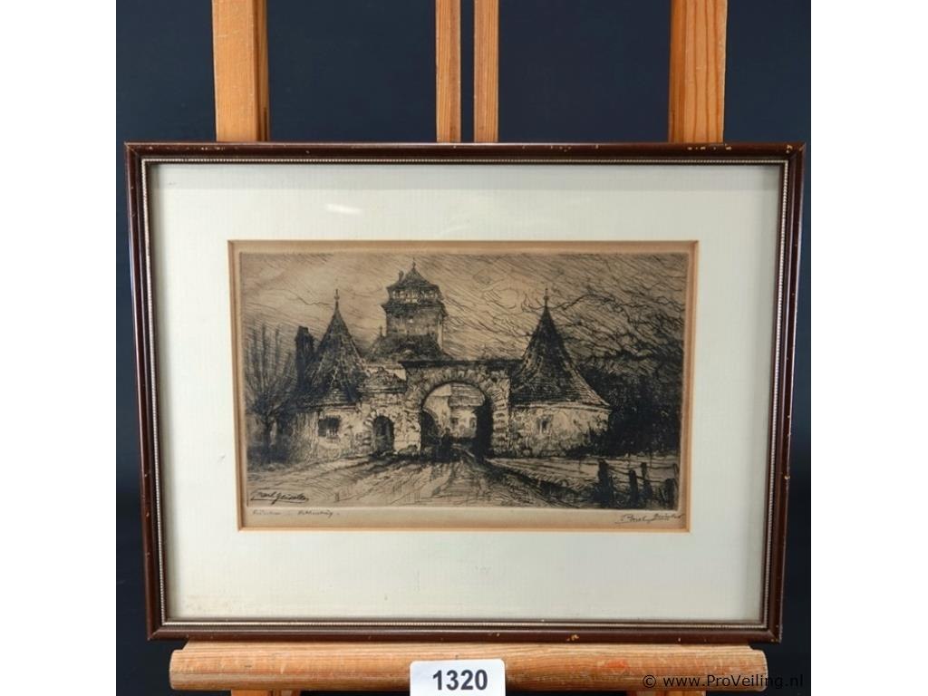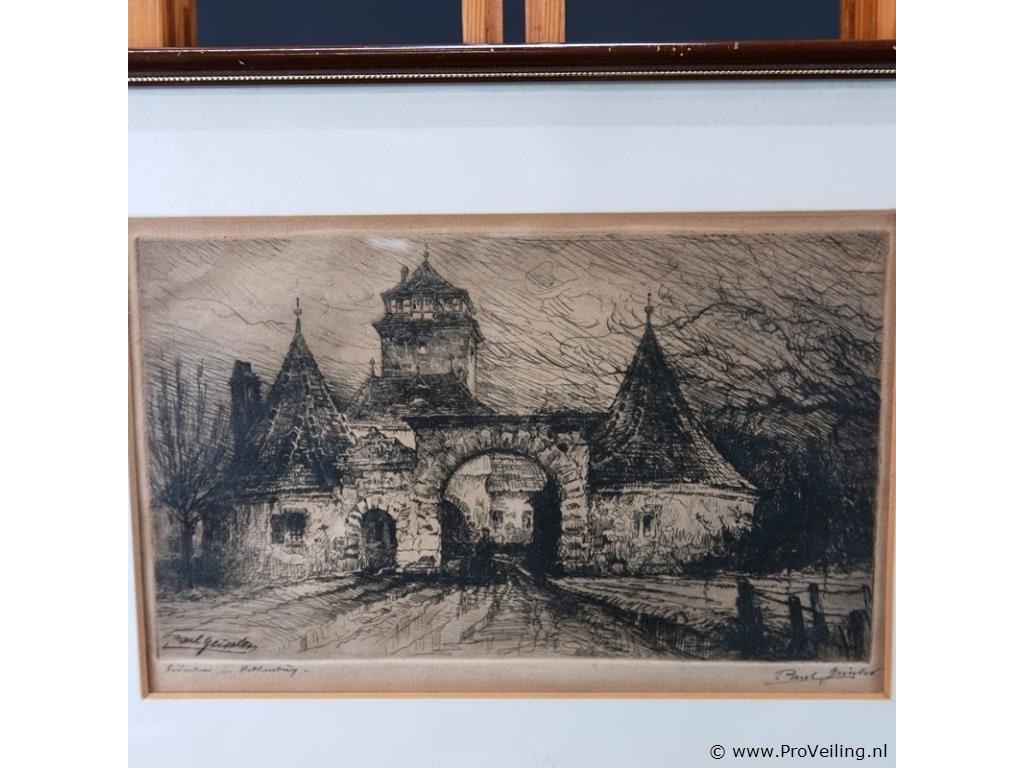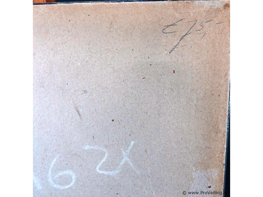 In passe-partout, achter glas en in houten lijst. H26cm/B33cm/632Gr. Dit betreft een tijdens transport kwetsbaar product! Uw transportrisico voor deze kavel is zeker in combinatie met andere kavels hoog. Lees daarom a.u.b. ook de extra veilinginformatie voor deze veiling!.