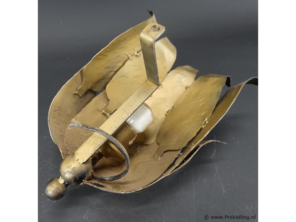 Messing wandlamp met bloem/bladmotief in een hollywood regency-stijl uit de jaren 60.