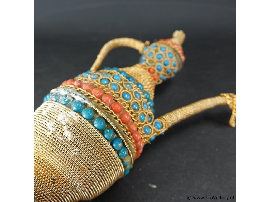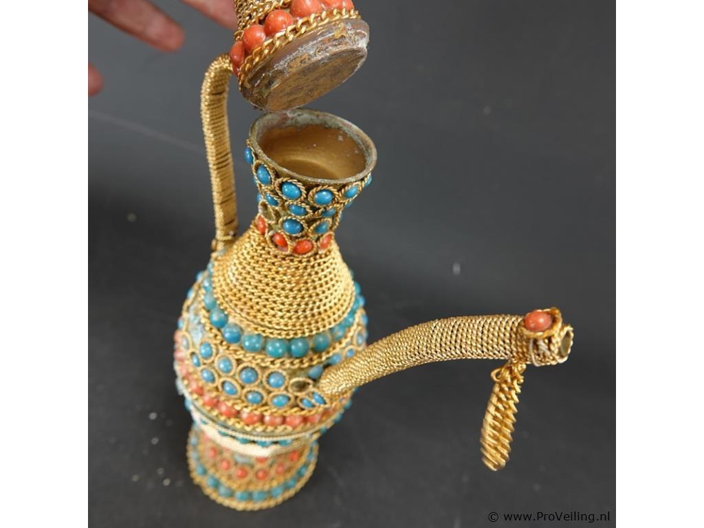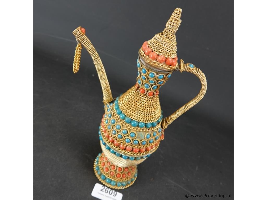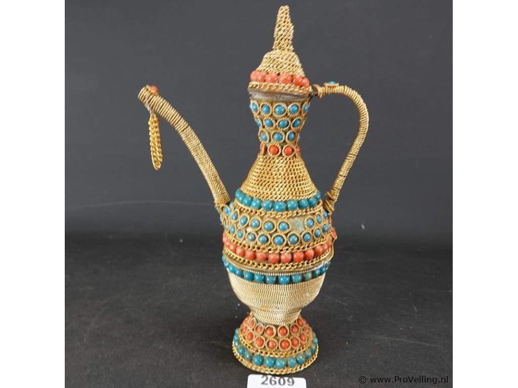 Oude messing marokkaanse kan gelardeerd met edelstenen