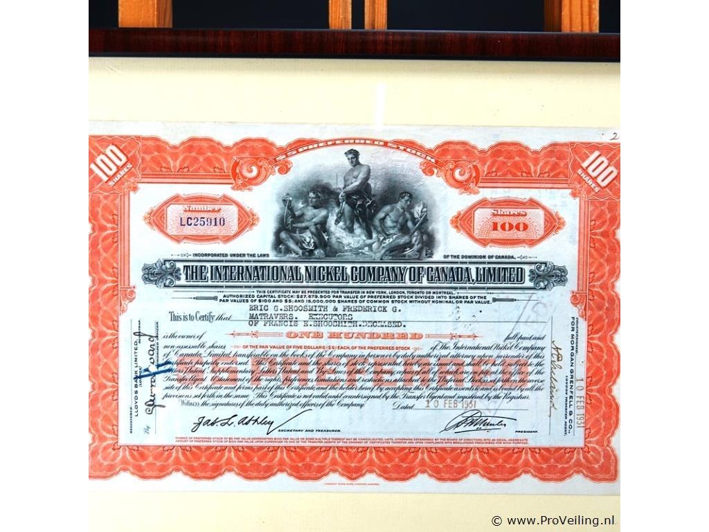 Aandeel the international nickel company of canada limited (1931)