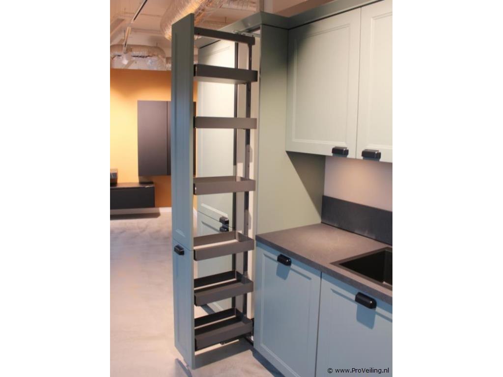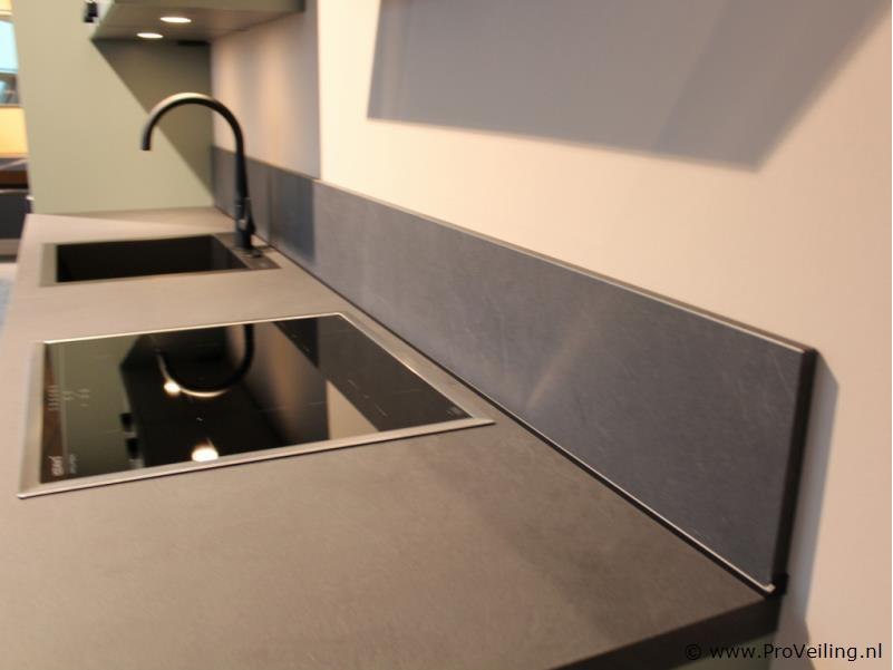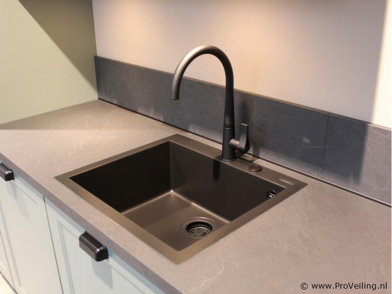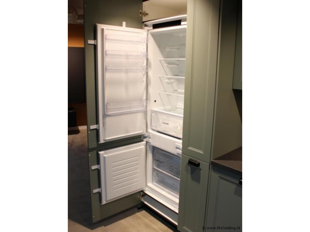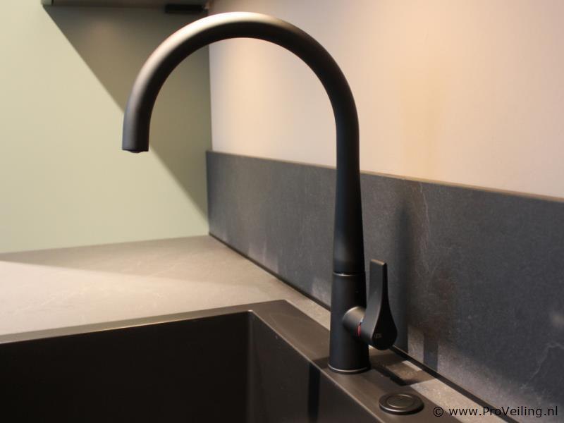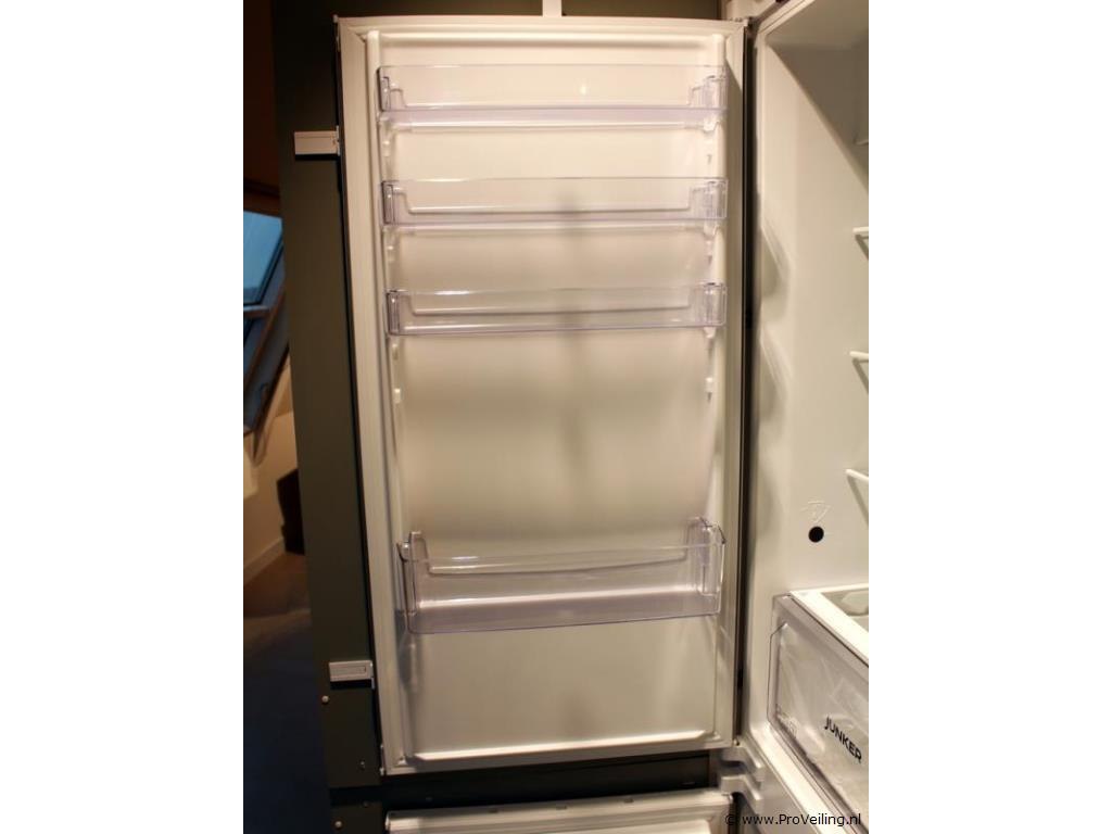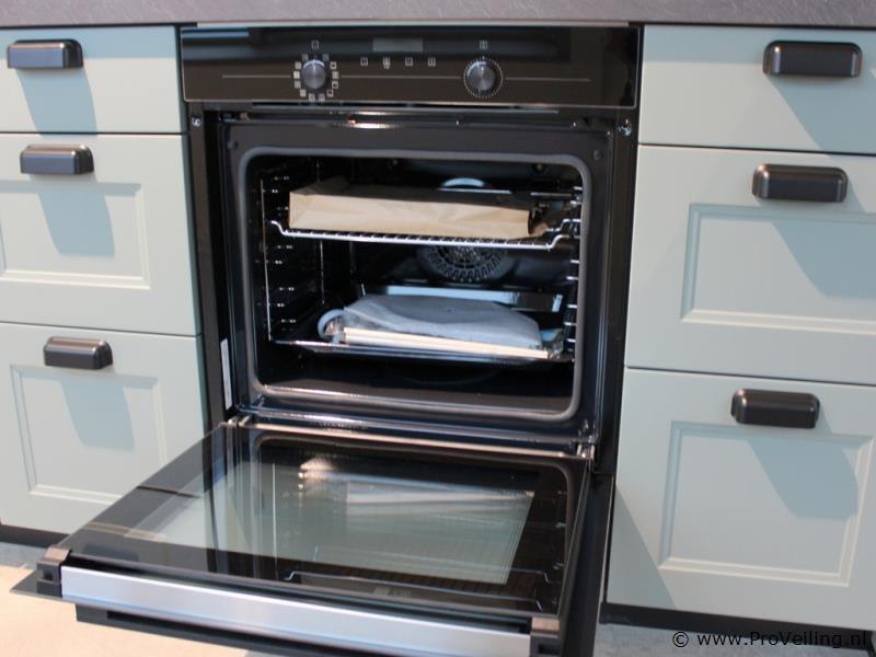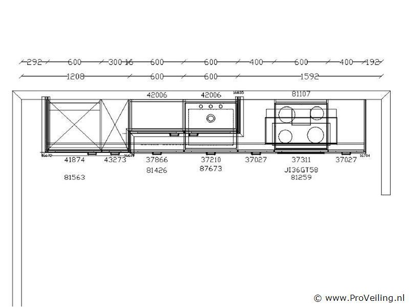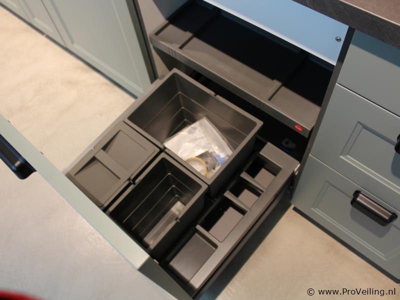 Productnaam: Rechte keuken Frontkleur: Olijf groen mat Grepen: Metalen komgreep Afmeting: 356 cm breed - 226 cm hoog (excl. kroonlijst +/- 5 cm) Afmeting: Werkblad hoogte 93 cm Vaatwasser: Junker JB65X02HUE - Inbouwvaatwasser - Inhoud: 12–13 couverts - 6 programma's - Startuitstel: Ja (tot 24 u - Energiezuinig & stil (±50 dB) ( Junker is made by Bosch/Siemens) Kookplaat: Junker JF4677063 - Inductiekookplaat - 4 zones elk met booster - Bediening: TouchControl (centraal onderin) - RVS rand - kinderbeveiliging - restwarmte indicatie - timer ( Junker is made by Bosch/Siemens) Afzuigkap: Junker Schuine wandafzuigkap (hoofdvrij) - Touch-bediening (tiptoetsen op glas) - Verlichting: LED verlichting - Vetfilters: Aluminium cassette-filter (uitwasbaar) - Afzuigcapaciteit: ca. 500–750 m³/h* - heldere verlichting ( Junker is made by Bosch/Siemens) Oven: Junker Multifunctionele heteluchtoven met 10 programma's, o.a. grill, grill met hetelucht onder en bovenwarmte etc. kinderslot - timer ( Junker is made by Bosch/Siemens) Koelkast Junker Koel/vriescombinatie met elektronische bediening en digitale temperatuur aanduiding - 5 glazen plateaus waarvan 4 in hoogte verstelbaar - groentelade - vier sterren diepvries, 2 laden ( Junker is made by Bosch/Siemens) Werkblad: Kunststof werkblad met stootvaste abs wekbladrand - kleur grijs gemêleerd - smetplint 20 cm hoog op achterwand (twee-delig) Spoelbak: Zwarte strakke vierkante spoelbak voorzien van waste (water afvoer open en dicht met knop) - met kraanplateau Kranen: Gessi één hendel design keukenmengkraan - hoog boogmodel (past emmer onder) - kleur zwart Conditie: Showmodel Bijzonderheden: U dient dit meubel zelf te demonteren - Zonder afgebeelde accessoires / materialen (Diversen) op en in het meubel Ter waarde van: € 15225 Productbeschrijving: Complete showroomkeuken uitgevoerd in een tijdloos klassiek-modern design, voorzien van hoogwaardige inbouwapparatuur van Junker. De keuken is uitgerust met een werkblad met bijpassende achterwand, luxe spoelbak en moderne zwarte mengkraan. De opstelling beschikt over ruime onder- en bovenkasten, praktische lade-indelingen, een hoge apothekerskast met 6 voorraadmanden in hoogte verstelbaar en een volledig geïntegreerde koel-vriescombinatie. Verder voorzien van inductiekookplaat, inbouwoven, vaatwasser en een schuine design afzuigkap in zwart glas. Een complete, luxe keukenopstelling Demontage 1: U dient deze kavel zelf te demonteren in overleg - keuken bevind zich op etage, goederenlift is aanwezig Demontage 2: Demontage en bezorging van deze keuken is mogelijk. Neemt u contact op met onze Servicedesk via: info@proveiling.nl voor meer informatie. Conditie: Showroommodel Garantie: Wettelijke fabrieksgarantie.