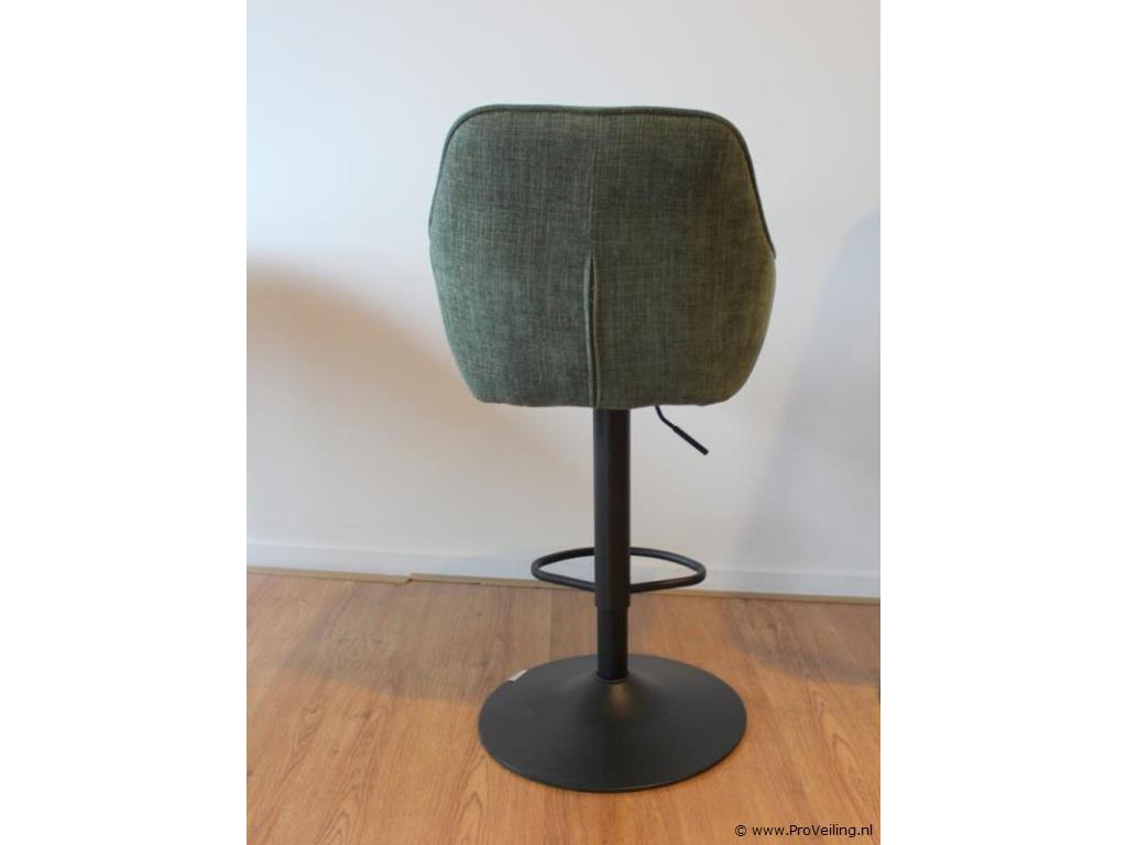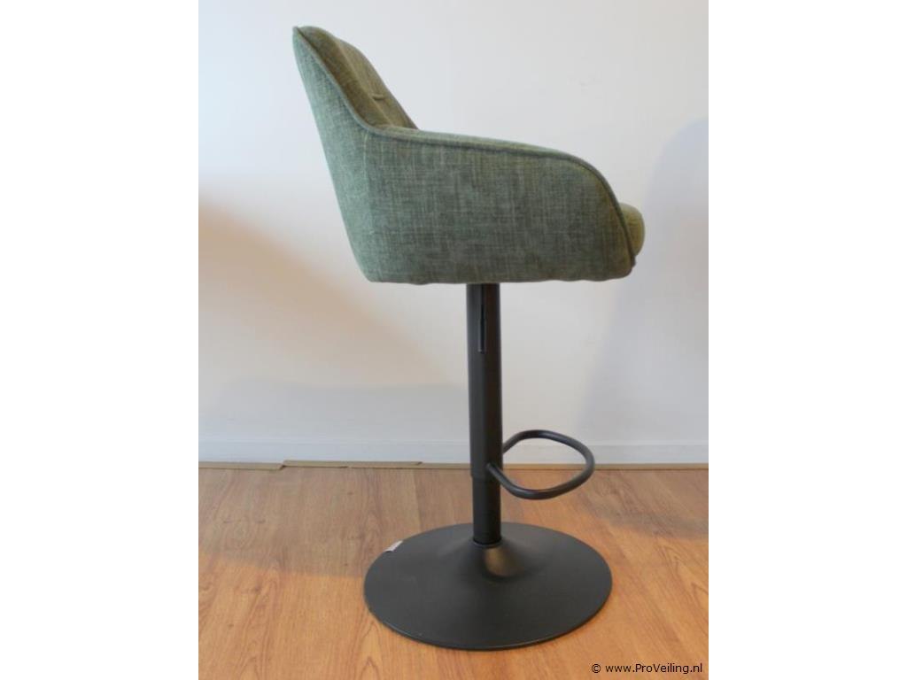Aantal: Set van 2 stuks Productnaam: Barkrukken Type: Candy type Dori Conditie: Nieuw Ter waarde van: € 798 Productbeschrijving: Barkruk Avola uitgevoerd in stof Forest Green Set van 2 stuks Comfortabele barkrukken met armleuningen en een ergonomisch gevormde zitting Bekleed met slijtvaste stof in groene kleur (Forest Green) In hoogte verstelbaar door middel van gaslift Voorzien van ronde voet en geïntegreerde voetensteun Stabiel metalen onderstel in zwarte uitvoering Geschikt voor gebruik aan kookeilanden en bartafels