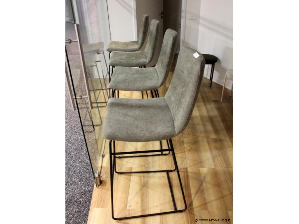 Aantal: Set van 4 stuks Productnaam: Barkrukken Conditie: Nieuw Ter waarde van: € 880 Productbeschrijving: Barkruk Candy type Dori met hoge rugleuning Uitgevoerd in groene stofbekleding Comfortabele zitting met ergonomisch gevormde rug Slank metalen frame in zwarte afwerking Voorzien van vaste poten met voetsteun Stabiele en solide constructie Geschikt voor gebruik aan bar of kookeiland Moderne, eigentijdse uitstraling Staat: Nieuw, showroomopstelling Afmetingen (indicatie): Totale hoogte: ca. 105 – 110 cm Zithoogte: ca. 75 cm Breedte: ca. 45 cm Diepte: ca. 50 cm