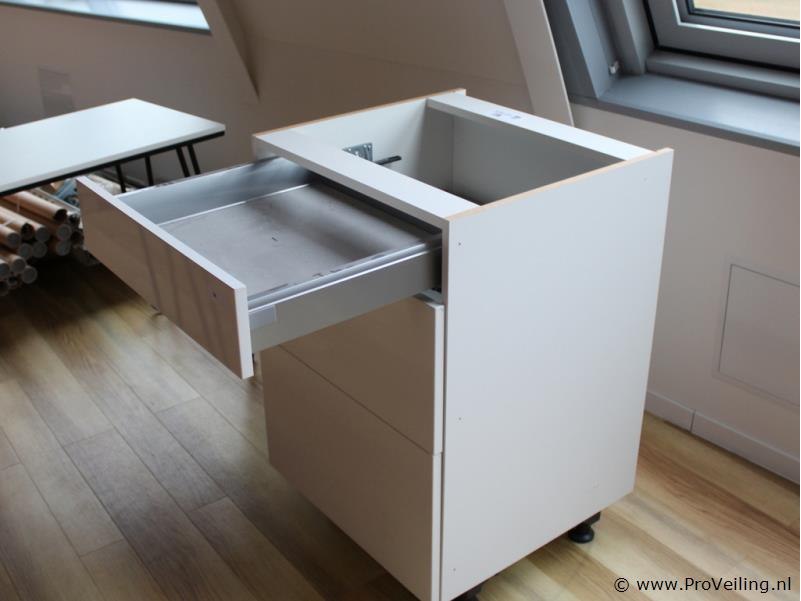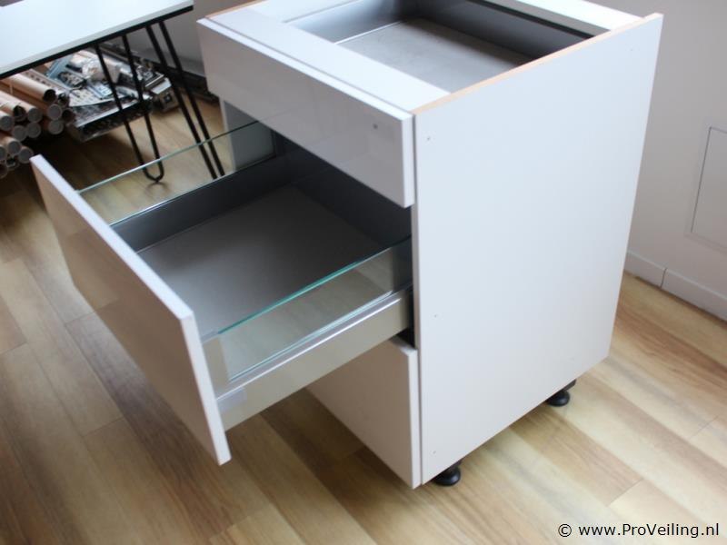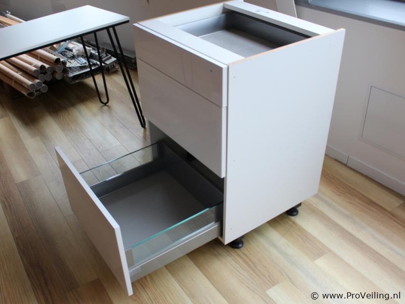 Merk: Nobilia Productnaam: onderkast / ladekast Type: Conditie: Nieuw Ter waarde van: € 650 Productbeschrijving: Onderkast van het Duitse kwaliteitsmerk Nobilia, uitgevoerd als ladekast met 2 uittrekbare korven en 1 lade. Afwerking in wit mat, passend binnen moderne en tijdloze keukens. Voorzien van degelijke metalen ladegeleiders en solide corpusconstructie. Geschikt voor plaatsing onder een werkblad; exclusief werkblad geleverd. Showroommodel, niet gebruikt. Afmetingen kast: ca. 60 cm breed x 58,5 cm diep x 80,5 cm hoog. Inclusief stelpoten (+10 cm) voor hoogteverstelling en uitlijning.