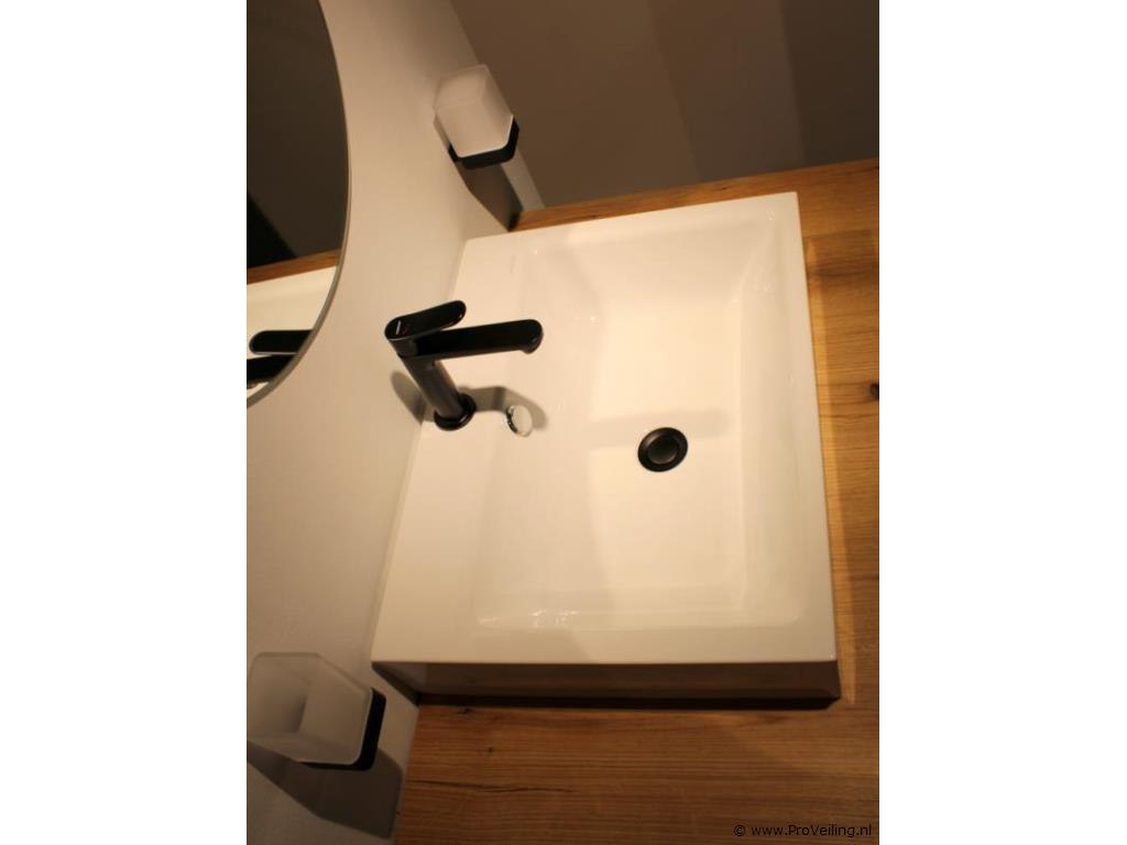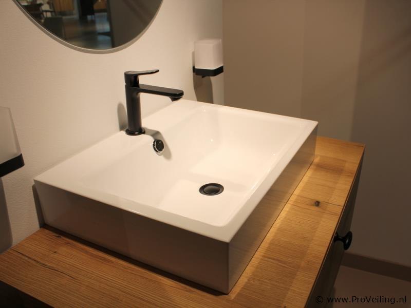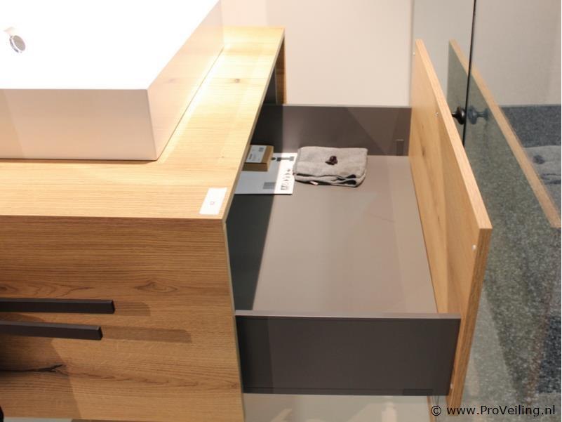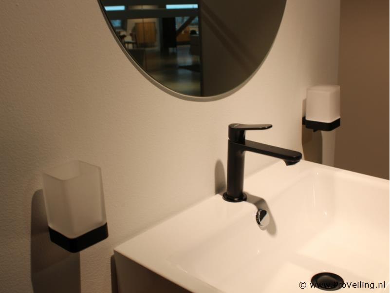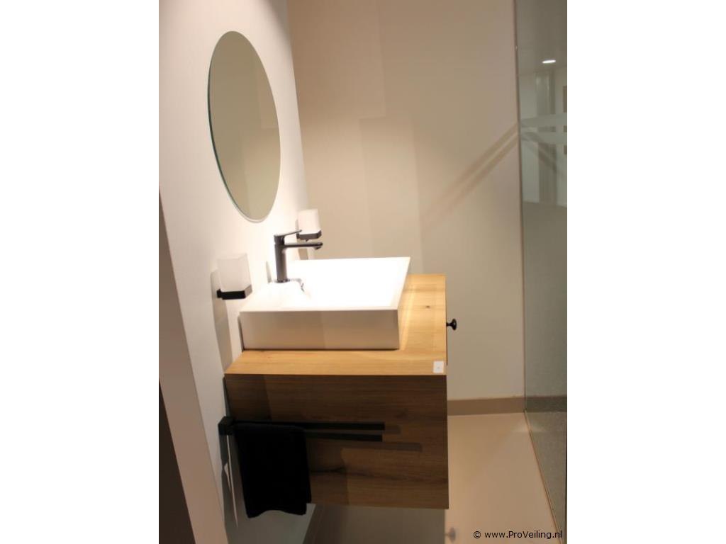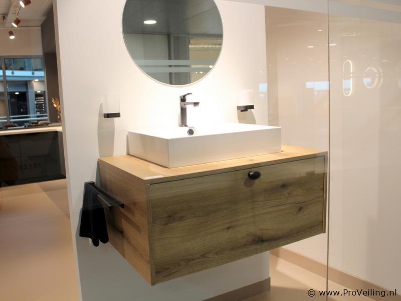 Merk: Brigitte Productnaam: Badkamermeubel Conditie: Nieuw Ter waarde van: € 2295 Productbeschrijving: Brigitte badkamermeubel – compleet meubelset (showroommodel) Stijlvol badkamermeubel van Brigitte, uitgevoerd met houtlook front en moderne afwerking. Dit meubel is opgesteld als showroommodel en verkeert in zeer nette staat. Specificaties: – Badkamermeubel met lade – Afmetingen meubel: 94 cm breed x 41 cm hoog x 58,5 cm diep – Keramische opzetwastafel (wit) – Mengkraan inbegrepen – Ronde spiegel van 60 cm – Inclusief accessoires, zoals handdoekenrek en wandverlichting Demontage 1: U dient deze kavel zelf te demonteren in overleg - kavel bevind zich op etage, goederenlift is aanwezig Demontage 2: Demontage en bezorging van deze kavel is mogelijk. Neemt u contact op met onze Servicedesk via: info@proveiling.nl voor meer informatie. Conditie: Showroommodel, niet gebruikt (nieuw) Garantie: niet van toepassing (showroomopstelling)