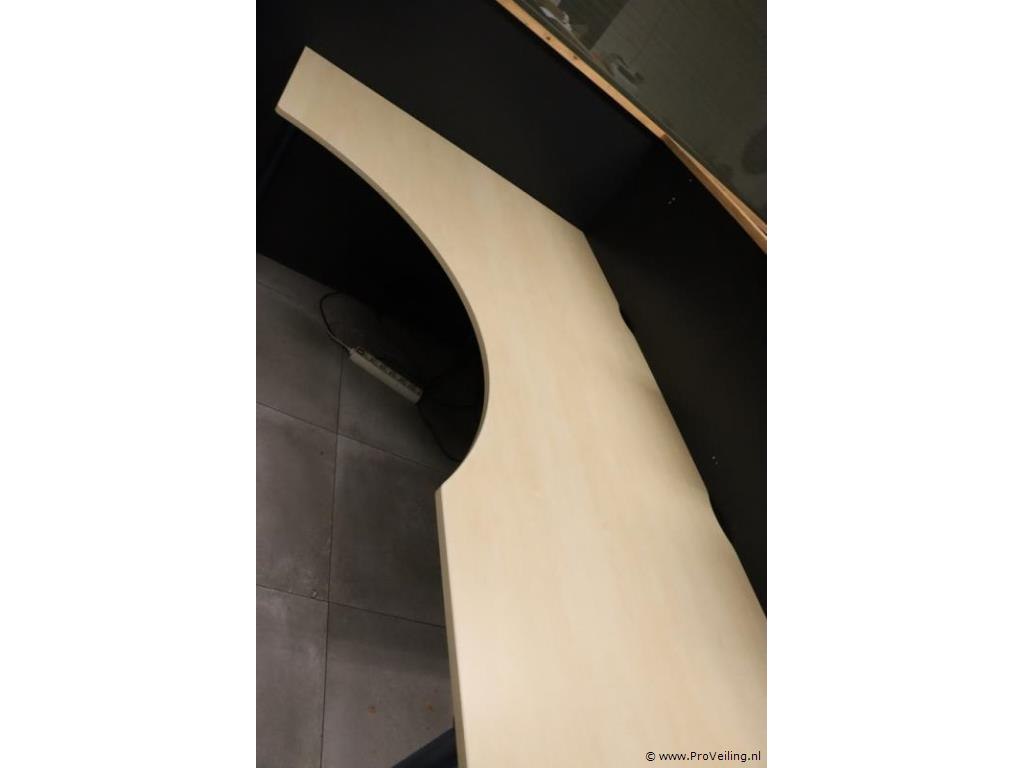 Hoekbureau met uitsparing; voorzien van verstelbare poten; afmetingen ca. 200x80-120x78cm.