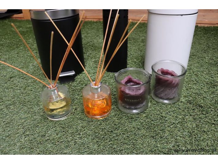 Partij diversen o.a. afvalemmers, toiletborstelhouder & kaarsje in glas
