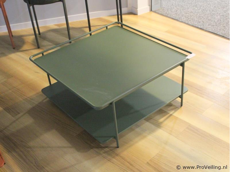 Productnaam: Salontafel Yuba Conditie: Nieuw Ter waarde van: € 399 Productbeschrijving: Moderne salontafel uitgevoerd in volledig metalen constructie met een strak en minimalistisch ontwerp. Voorzien van een vierkant tafelblad met opstaande rand en een extra onderblad voor praktische opbergruimte. De matte groene afwerking geeft de tafel een eigentijdse uitstraling en past goed in zowel moderne als industriële interieurs. Stevig frame met slanke poten voor een stabiele plaatsing. Afmeting: ca. 75 x 75 cm Materiaal: metaal Kleur: groen Uitvoering: met onderblad