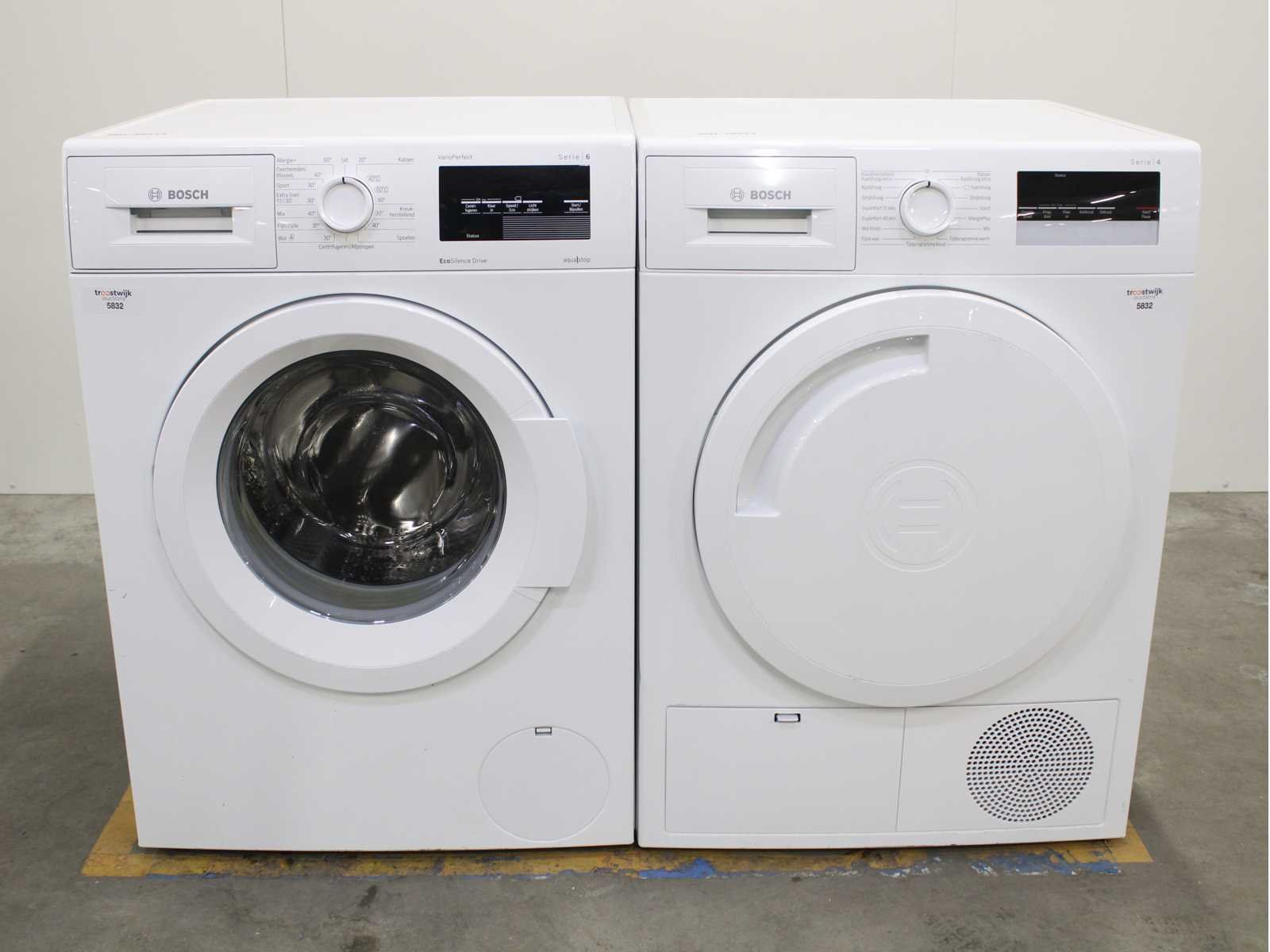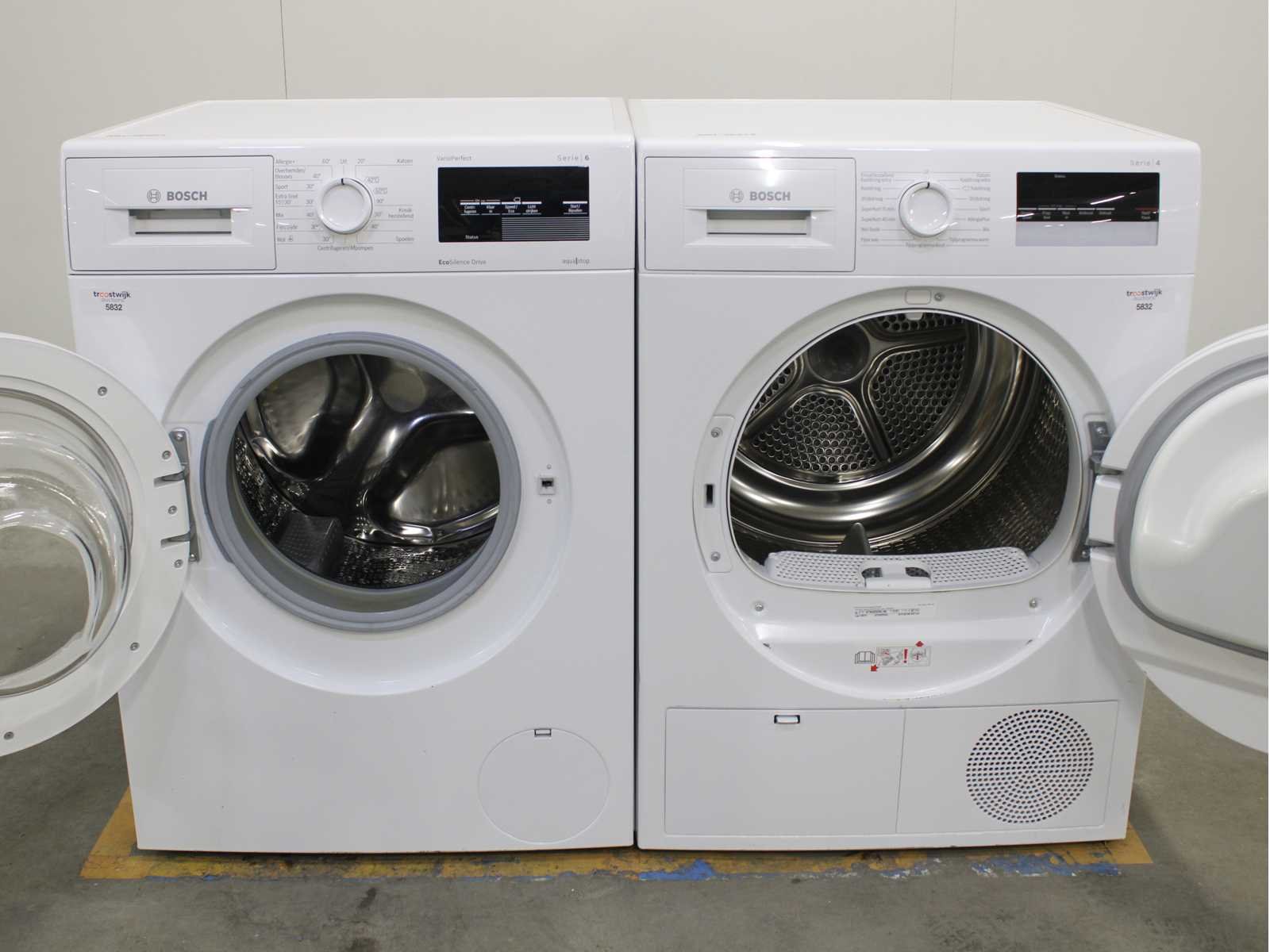 Deze wasmachine en wasdroger komen uit een partij jong gebruikt A-Merk witgoed. De machines zijn volledig getest, gereinigd en indien nodig gerepareerd. Houdt er rekening mee dat de machines lichte gebruikssporen kunnen hebben. Wasmachines en wasdrogers hebben vaak standaard afmetingen. Hoogte 85cm, Breedte 60cm en Diepte 60 tot 70cm, incl. uitstekende slangen e.d. aan de achterzijde. Als de machine vrij komt te staan is de afmeting minder relevant. Wil je de machine in een nis plaatsen of inbouwen? Controleer dan de exacte afmetingen op basis van het aangeboden merk en model/type. Within 7 days Merk: Bosch Serienummer: WNAT323471 en WTN83202NL