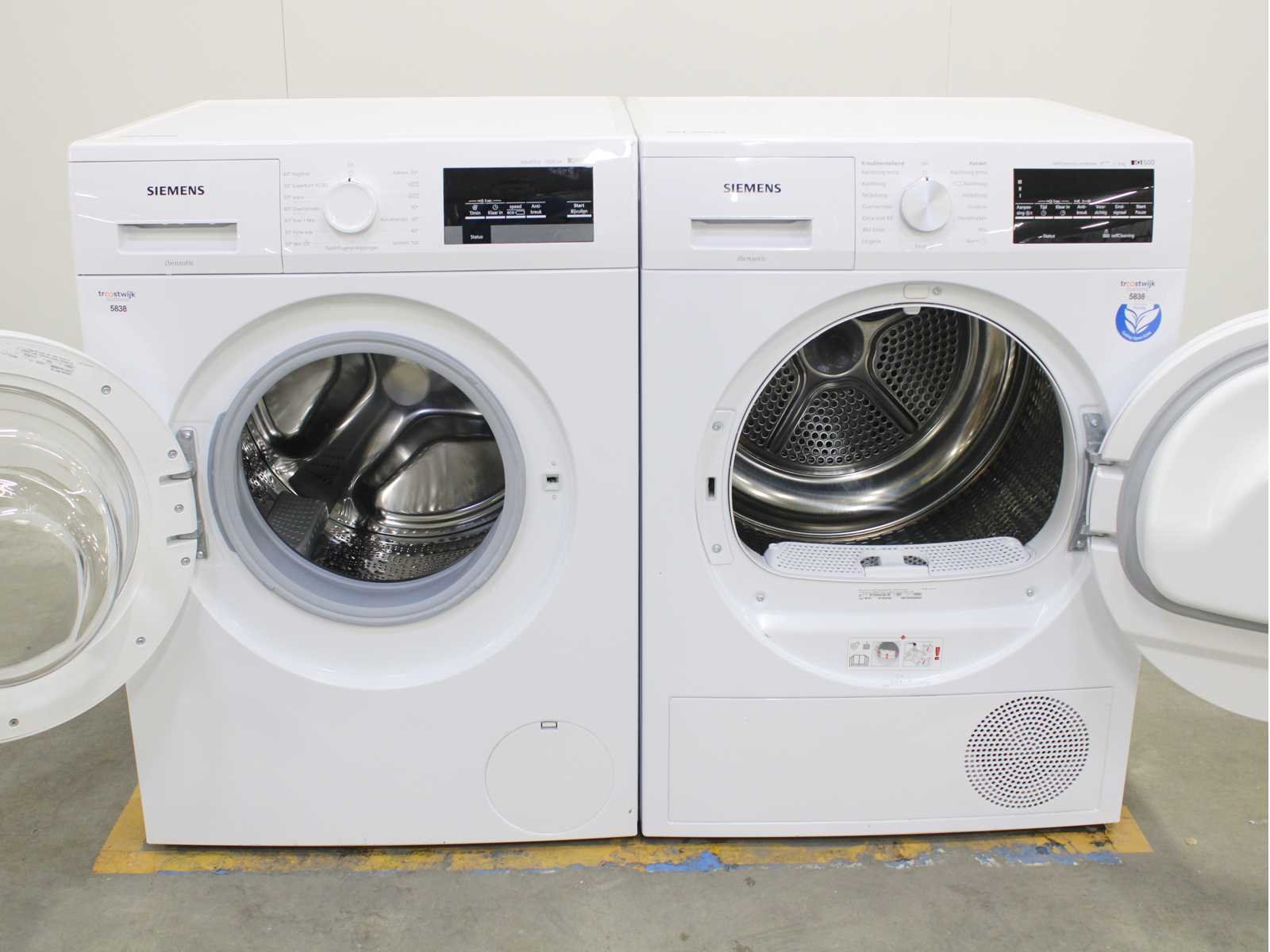 Deze wasmachine en wasdroger komen uit een partij jong gebruikt A-Merk witgoed. De machines zijn volledig getest, gereinigd en indien nodig gerepareerd. Houdt er rekening mee dat de machines lichte gebruikssporen kunnen hebben. Wasmachines en wasdrogers hebben vaak standaard afmetingen. Hoogte 85cm, Breedte 60cm en Diepte 60 tot 70cm, incl. uitstekende slangen e.d. aan de achterzijde. Als de machine vrij komt te staan is de afmeting minder relevant. Wil je de machine in een nis plaatsen of inbouwen? Controleer dan de exacte afmetingen op basis van het aangeboden merk en model/type. Within 7 days Merk: Siemens Serienummer: WMN16T3471 en WT44W4E5NL/09