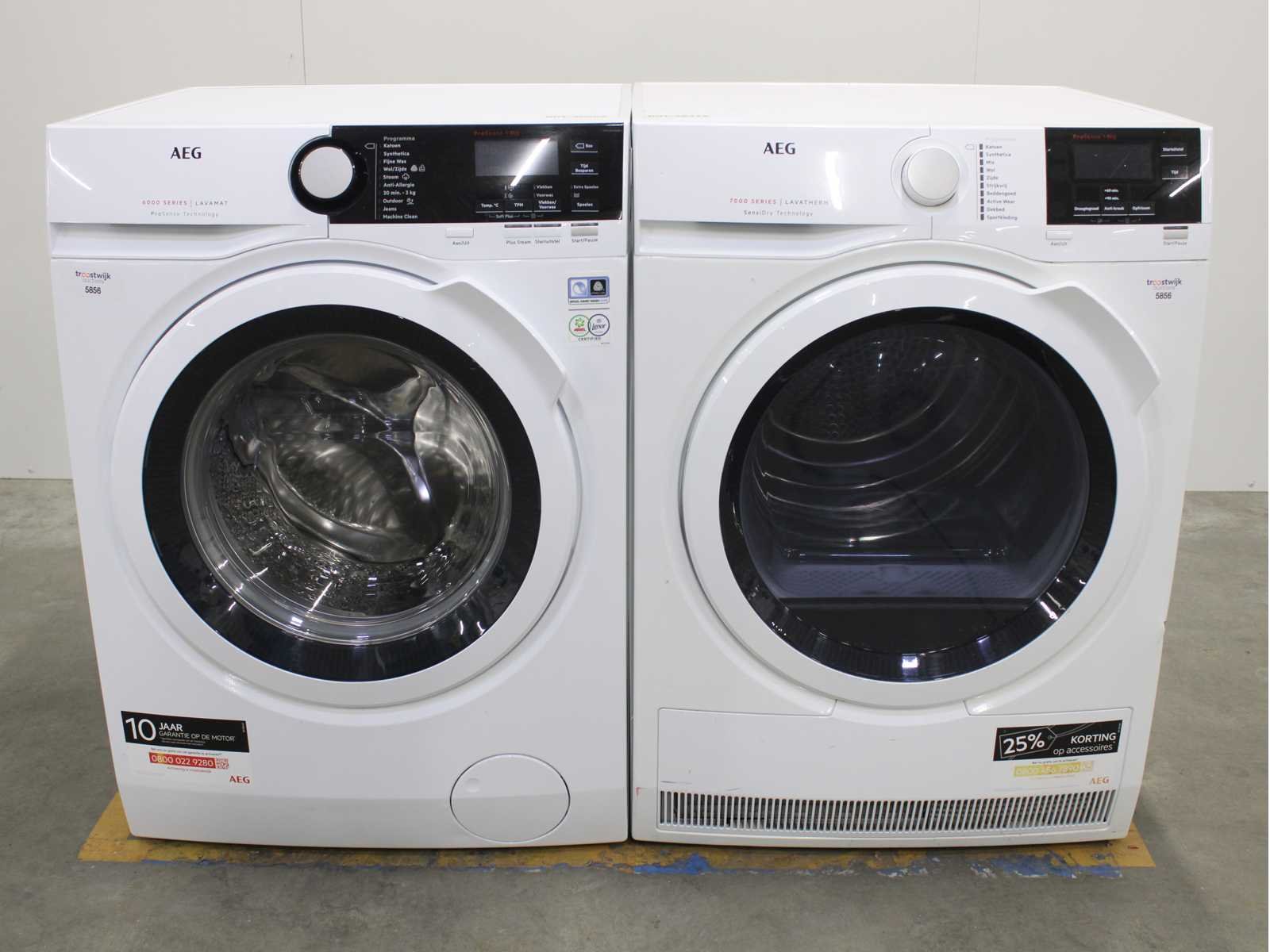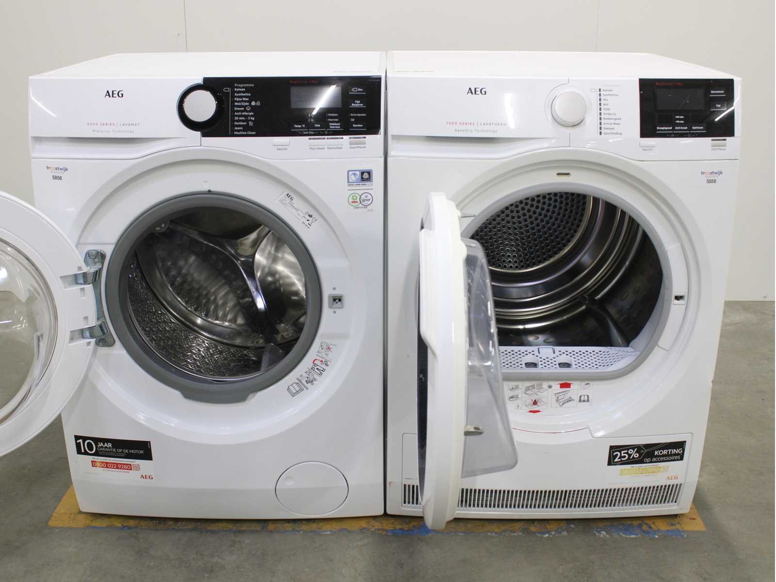 Deze wasmachine en wasdroger komen uit een partij jong gebruikt A-Merk witgoed. De machines zijn volledig getest, gereinigd en indien nodig gerepareerd. Houdt er rekening mee dat de machines lichte gebruikssporen kunnen hebben. Wasmachines en wasdrogers hebben vaak standaard afmetingen. Hoogte 85cm, Breedte 60cm en Diepte 60 tot 70cm, incl. uitstekende slangen e.d. aan de achterzijde. Als de machine vrij komt te staan is de afmeting minder relevant. Wil je de machine in een nis plaatsen of inbouwen? Controleer dan de exacte afmetingen op basis van het aangeboden merk en model/type. Within 7 days Merk: AEG Serienummer: L7FB84EW en T7DB83GW