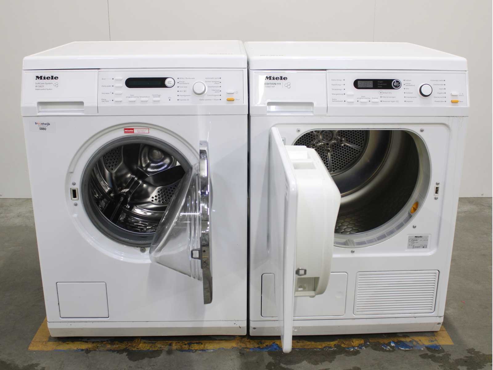 Deze wasmachine en wasdroger komen uit een partij jong gebruikt A-Merk witgoed. De machines zijn volledig getest, gereinigd en indien nodig gerepareerd. Houdt er rekening mee dat de machines lichte gebruikssporen kunnen hebben. Wasmachines en wasdrogers hebben vaak standaard afmetingen. Hoogte 85cm, Breedte 60cm en Diepte 60 tot 70cm, incl. uitstekende slangen e.d. aan de achterzijde. Als de machine vrij komt te staan is de afmeting minder relevant. Wil je de machine in een nis plaatsen of inbouwen? Controleer dan de exacte afmetingen op basis van het aangeboden merk en model/type. Within 7 days Merk: Miele Serienummer: W5821 en T8861 WP EDIT 111.