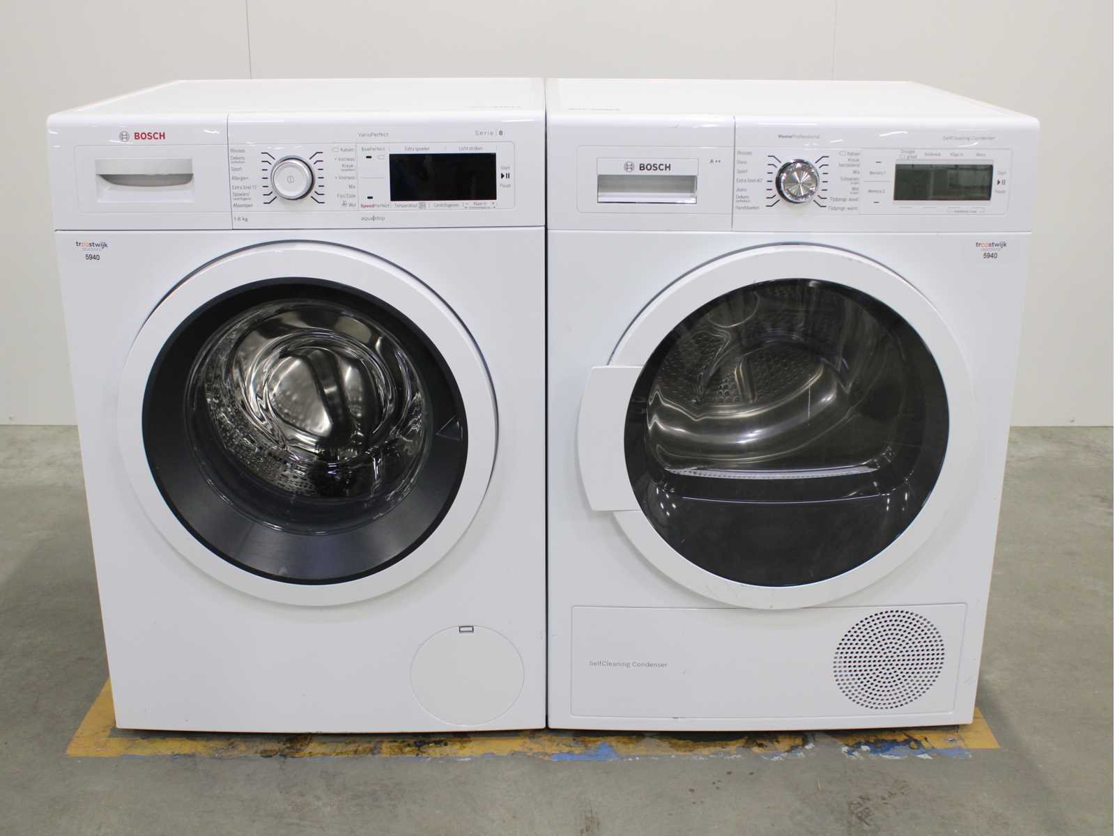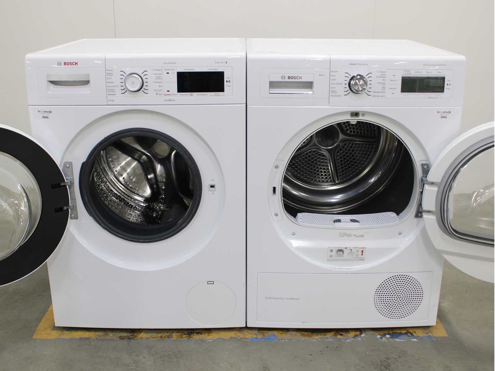 Deze wasmachine en wasdroger komen uit een partij jong gebruikt A-Merk witgoed. De machines zijn volledig getest, gereinigd en indien nodig gerepareerd. Houdt er rekening mee dat de machines lichte gebruikssporen kunnen hebben. Wasmachines en wasdrogers hebben vaak standaard afmetingen. Hoogte 85cm, Breedte 60cm en Diepte 60 tot 70cm, incl. uitstekende slangen e.d. aan de achterzijde. Als de machine vrij komt te staan is de afmeting minder relevant. Wil je de machine in een nis plaatsen of inbouwen? Controleer dan de exacte afmetingen op basis van het aangeboden merk en model/type. Within 7 days Merk: Bosch Serienummer: WAW32461NL/17 en WTY87791NL