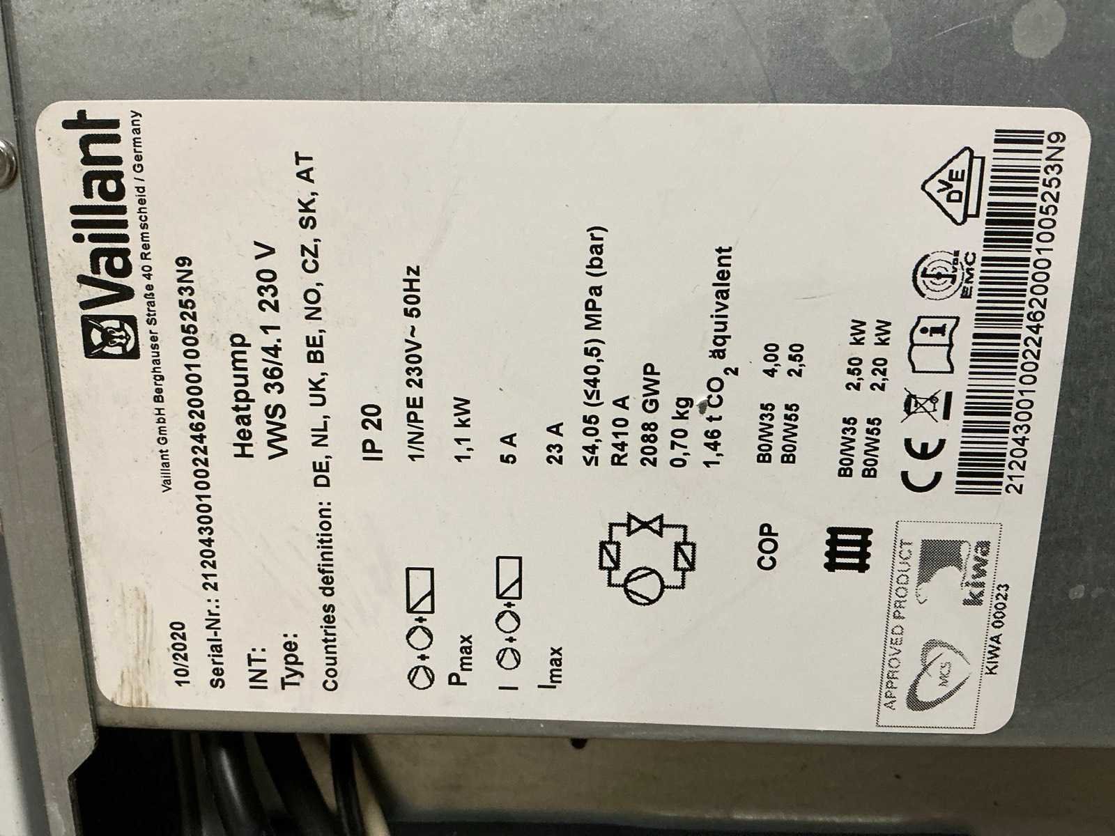 Vaillant vws 36/4.1 230v warmtepomp 2020