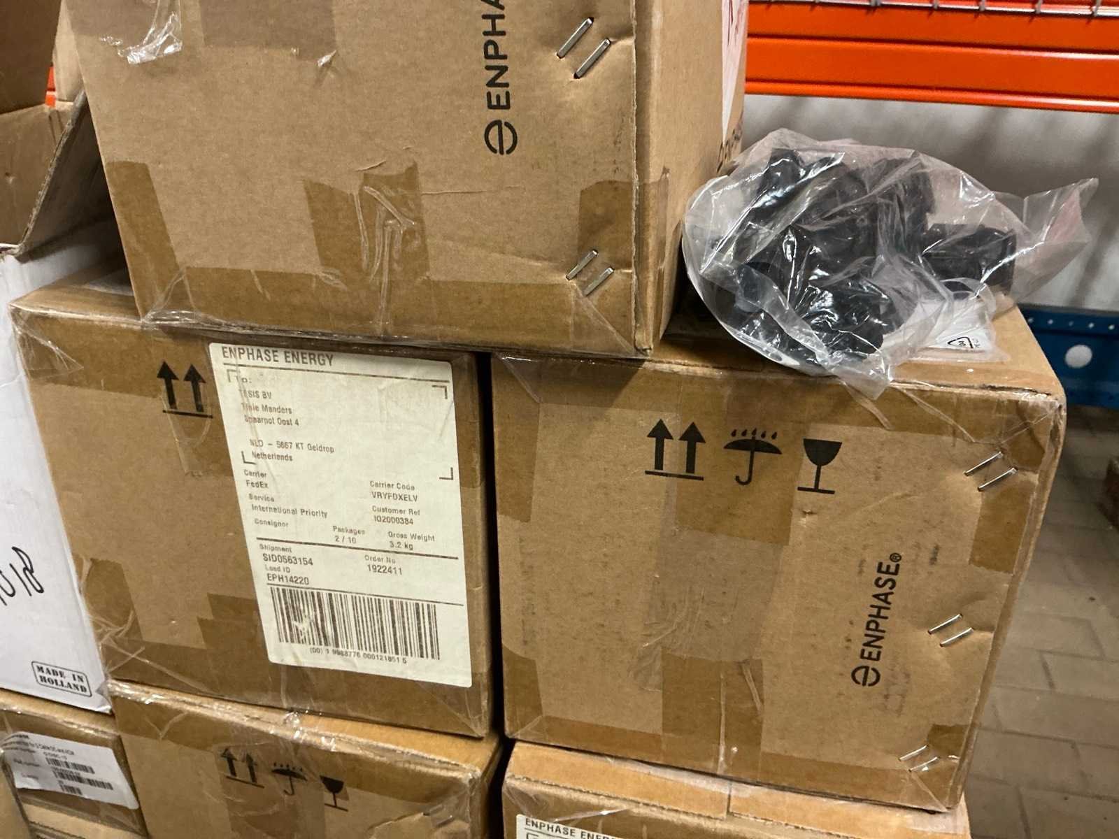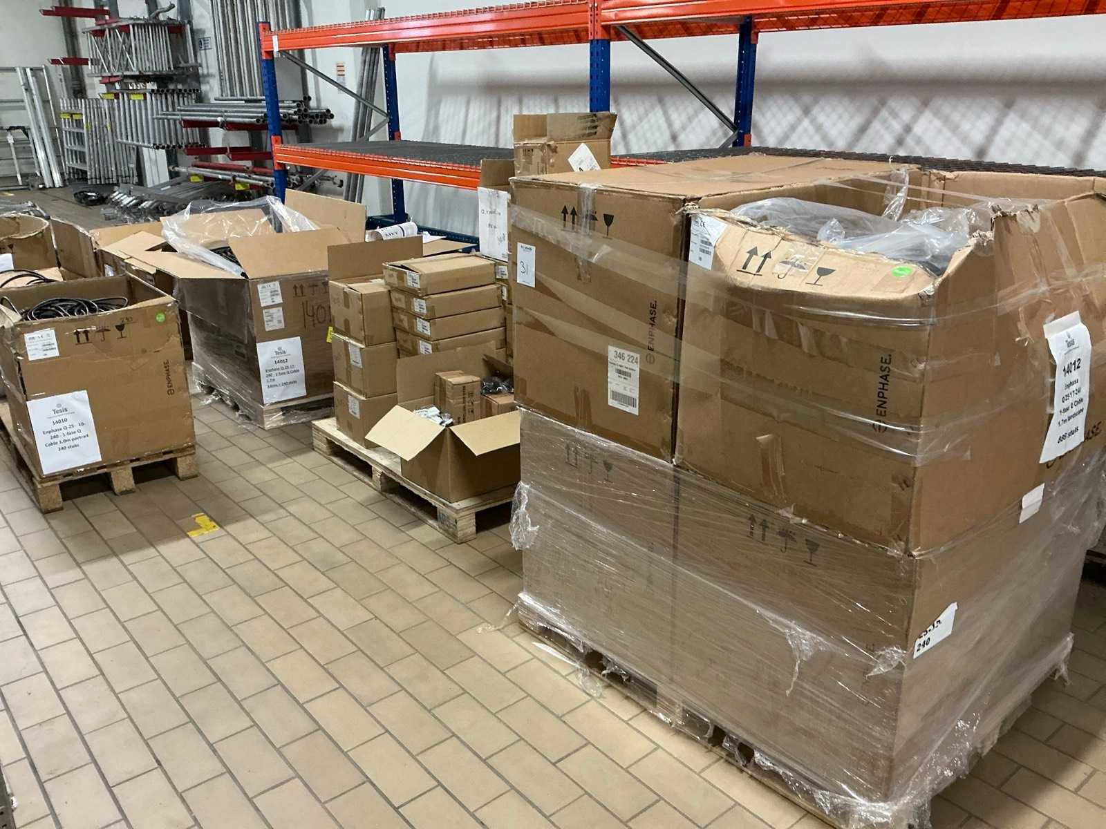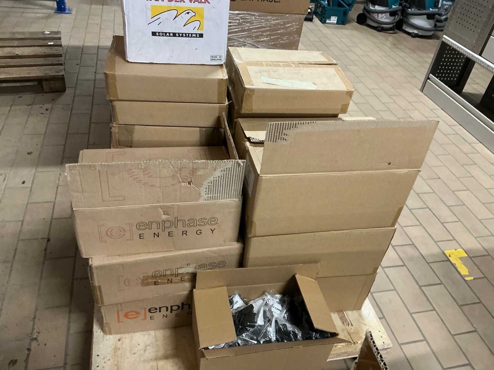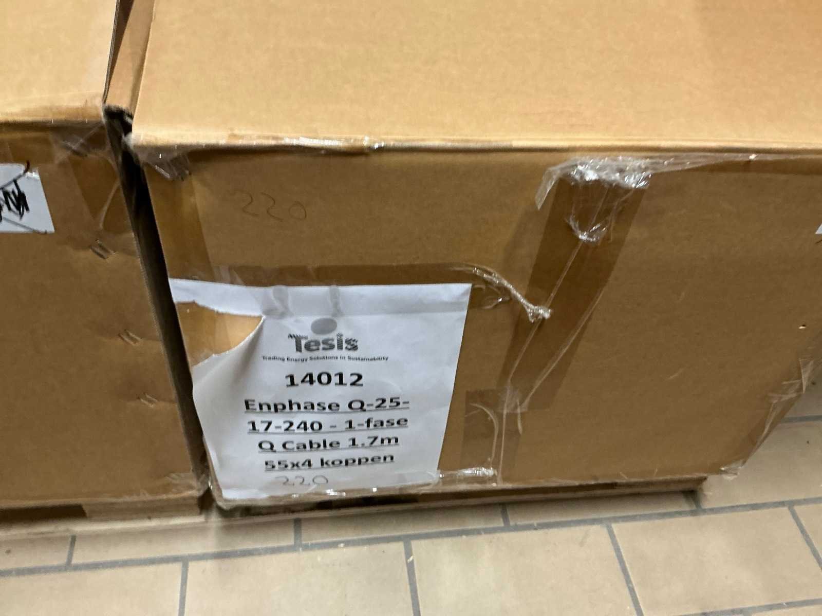 Totale kavel bestaat uit 7 pallets met ca 2000 stuks kabel en installatie materiaal, waaronder: ENPHASE Q-25-10 240 1-fase 1 meter, ENPHASE Q-25-17 240 1-fase 1.7 meter, PV- connector (Q-seal-10), Q-cable afsluitdop, Q-cable einddop, Connector clips. Merk: ENPHASE Q-25 Type: Zonnepaneel