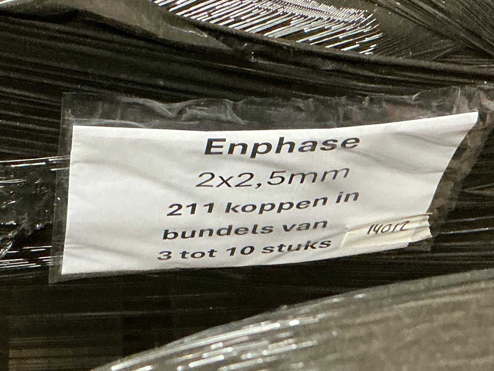 Totale kavel bestaat uit 6 pallets met ca 2500 stuks kabel, waaronder: ENPHASE ET-10 230 Merk: ENPHASE Type: ET-10-230 Zonnepaneel