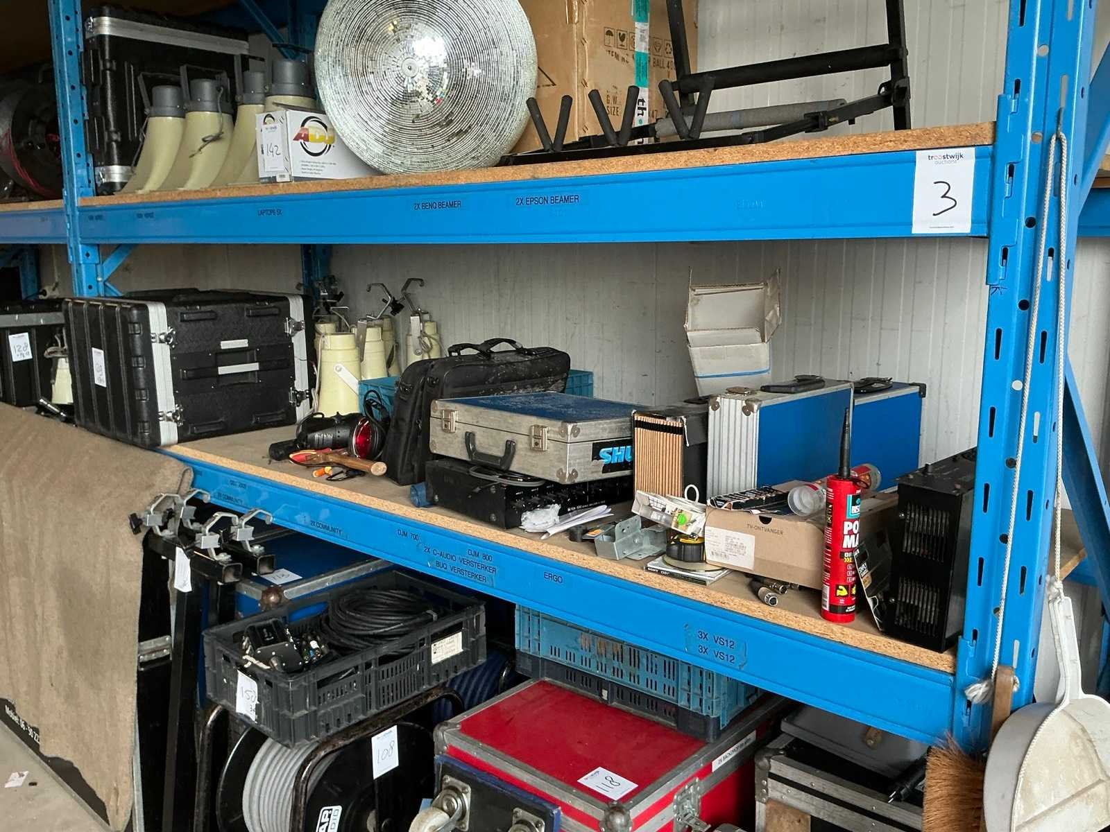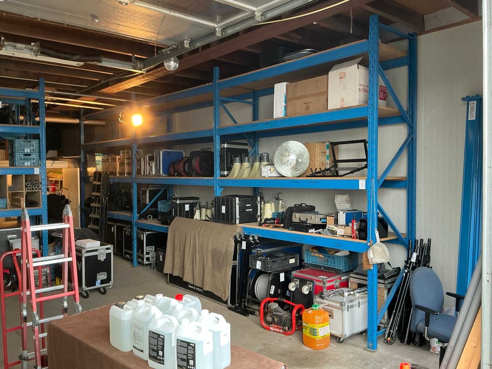 Zonder inhoud. Wegens logistieke beperkingen kan dit kavel alleen op 19 februari tussen 9:00-12:00 opgehaald worden. Merk: Stow Sectie afm. b: 2700mm Sectie diepte: 900mm Sectie afm. h: 3600mm Aantal staanders: 4 Aantal liggers: 24 Aantal legborden: 12 Demontabel: true Geconstrueerd: true