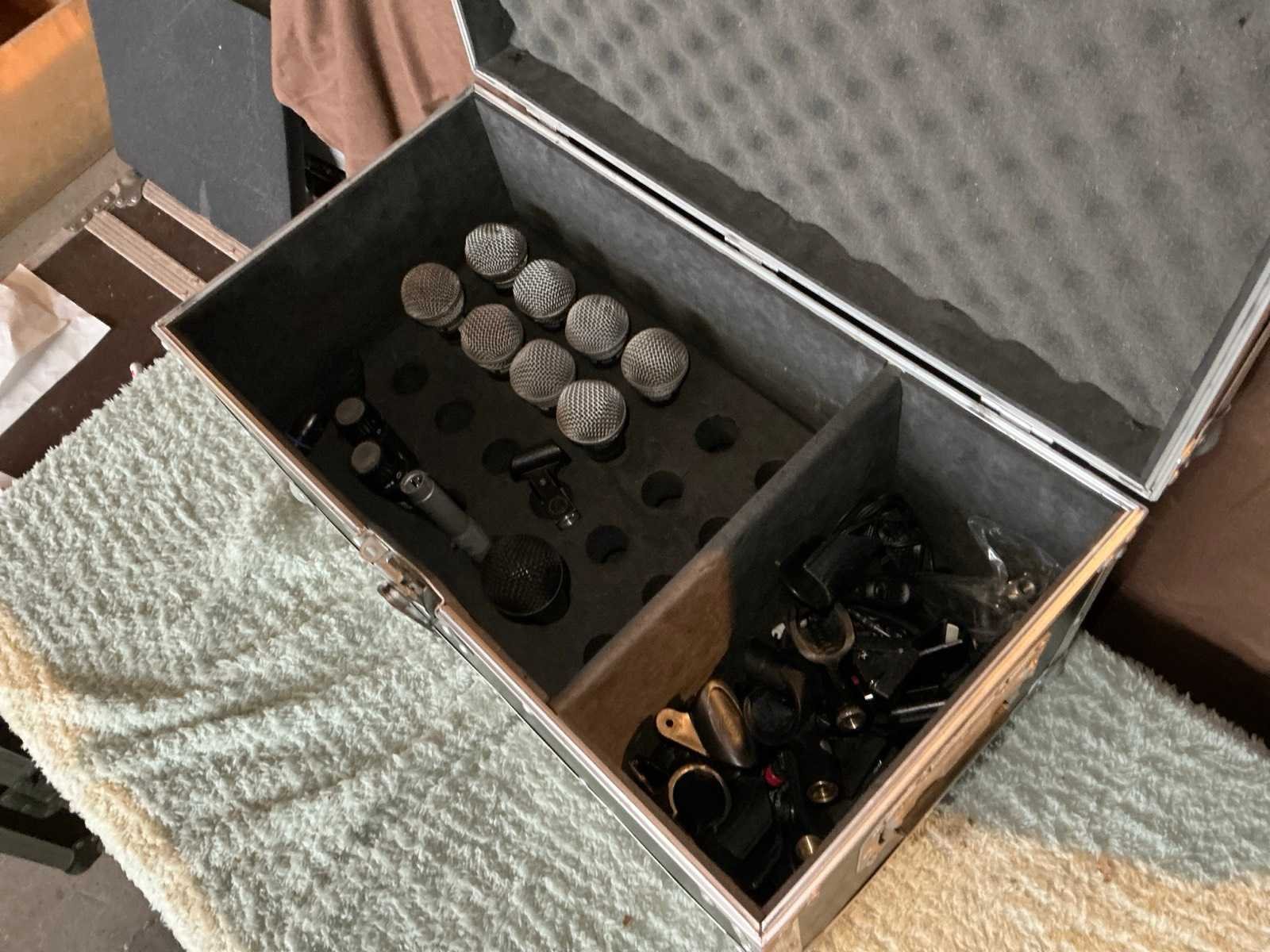 Verschillende soorten en maten waaronder SM58, SM57 in flightcase met diverse clips Merk: Shure / Samson