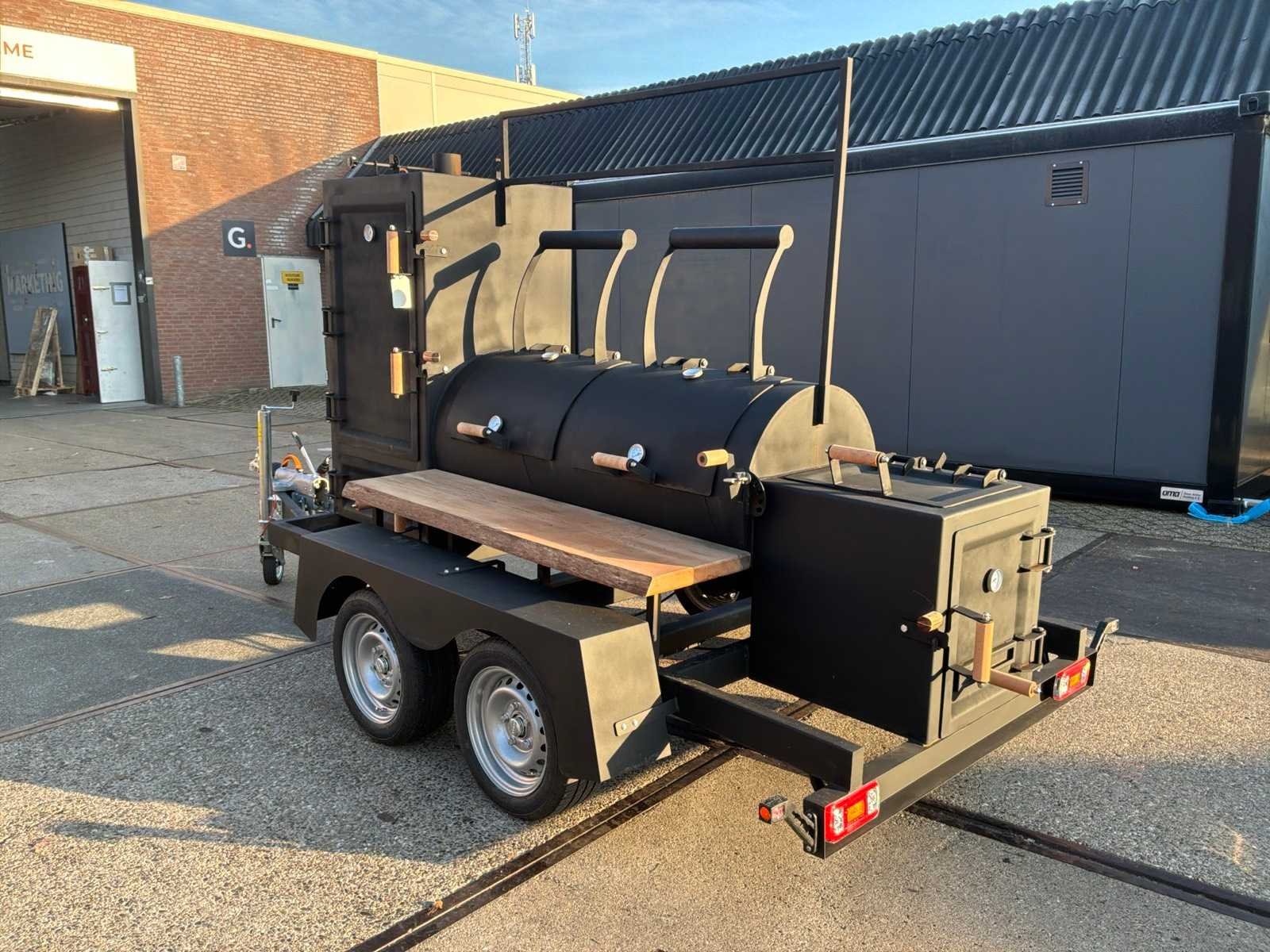 Ongebruikt. Voorzien van: rookkast met 6 lagen, 2 x rookkleppen, 3 lagen. Houten werkblad. Chassisnummer: NR92MC99PKR210119 Merk: Omake Model: 2-klep Lengte: 460cm Breedte: 200cm Hoogte: 210cm