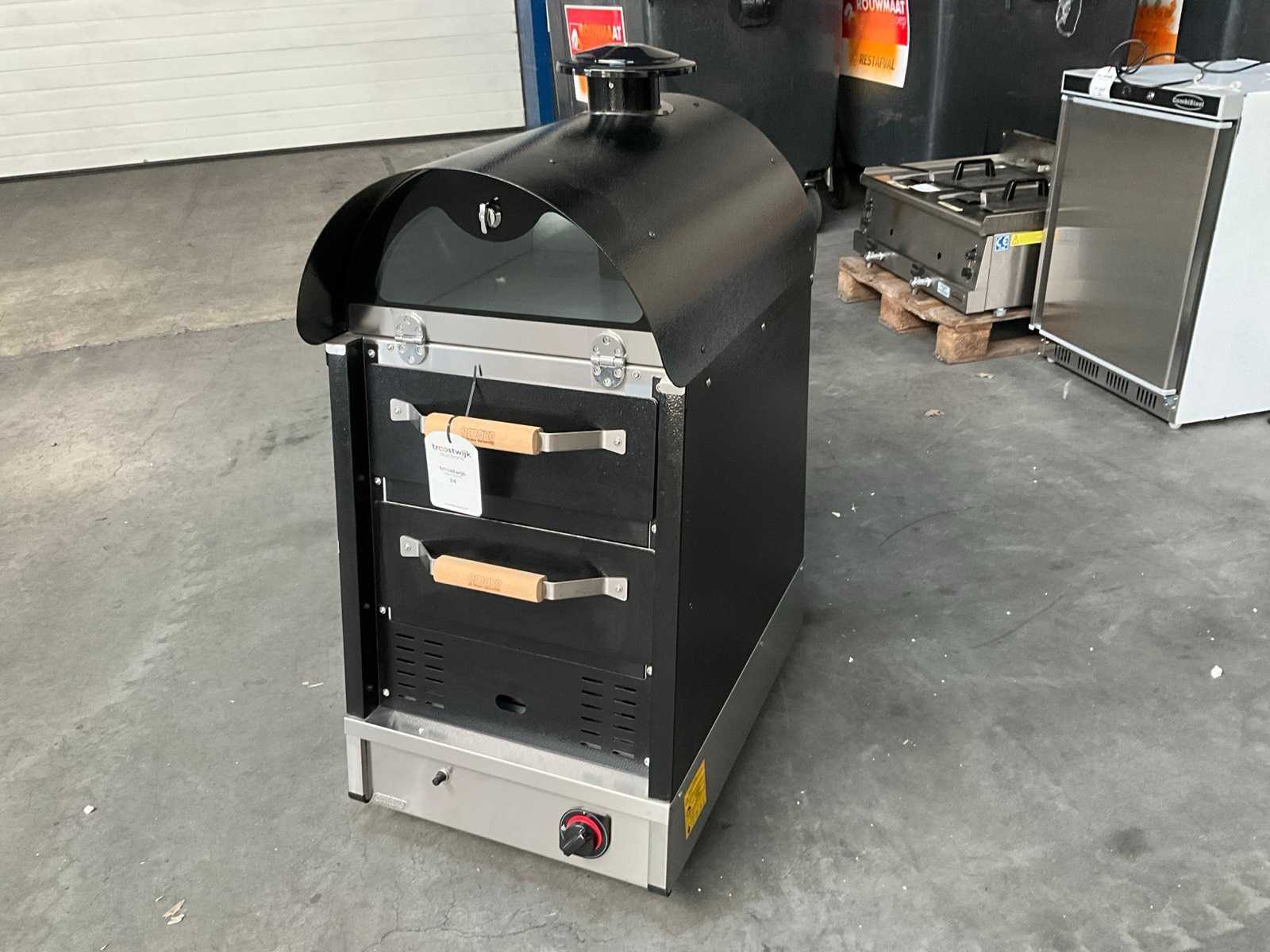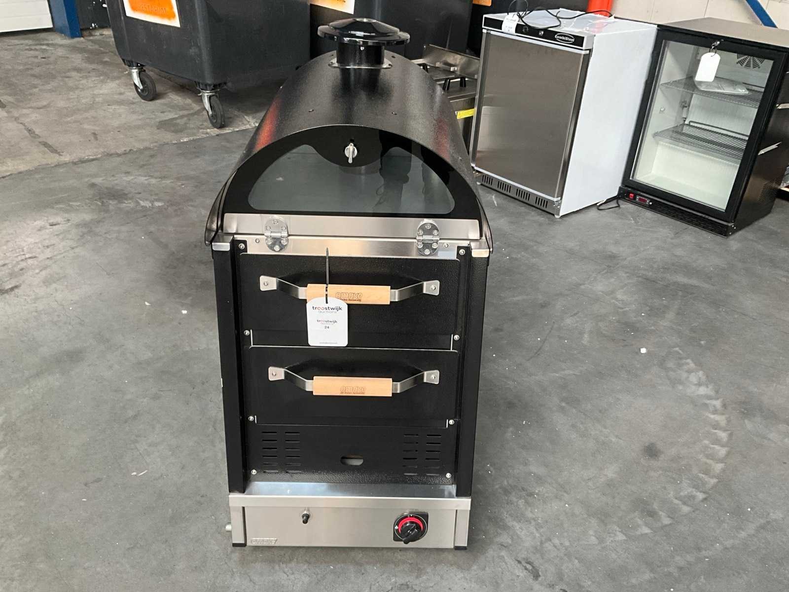 5,8Kw, voorzien van 2 lades, met gasaansluiting. Merk: Omake Model: FKM02.N11 2 deck Kleur: Zwart Gewicht: 77kg Materiaal: Metaal Bouwjaar: 2022 Totale afmeting Breedte: 530mm Totale afmeting L: 750mm Totale afmeting Hoogte: 1100mm