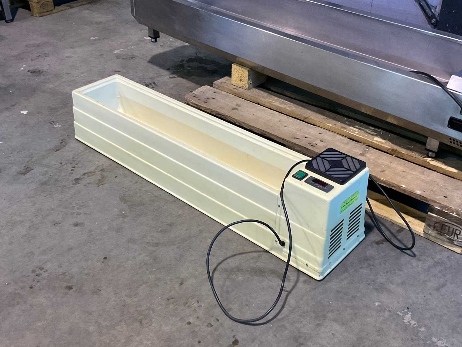 Cap. 1530x300 mm; incl. (1x) kunststof opzet koeler Aansluiting: 230V Digitale uitlezing: true Totale afmeting L: 1900mm Totale afmeting Breedte: 400mm Totale afmeting Hoogte: 300mm Rvs: true