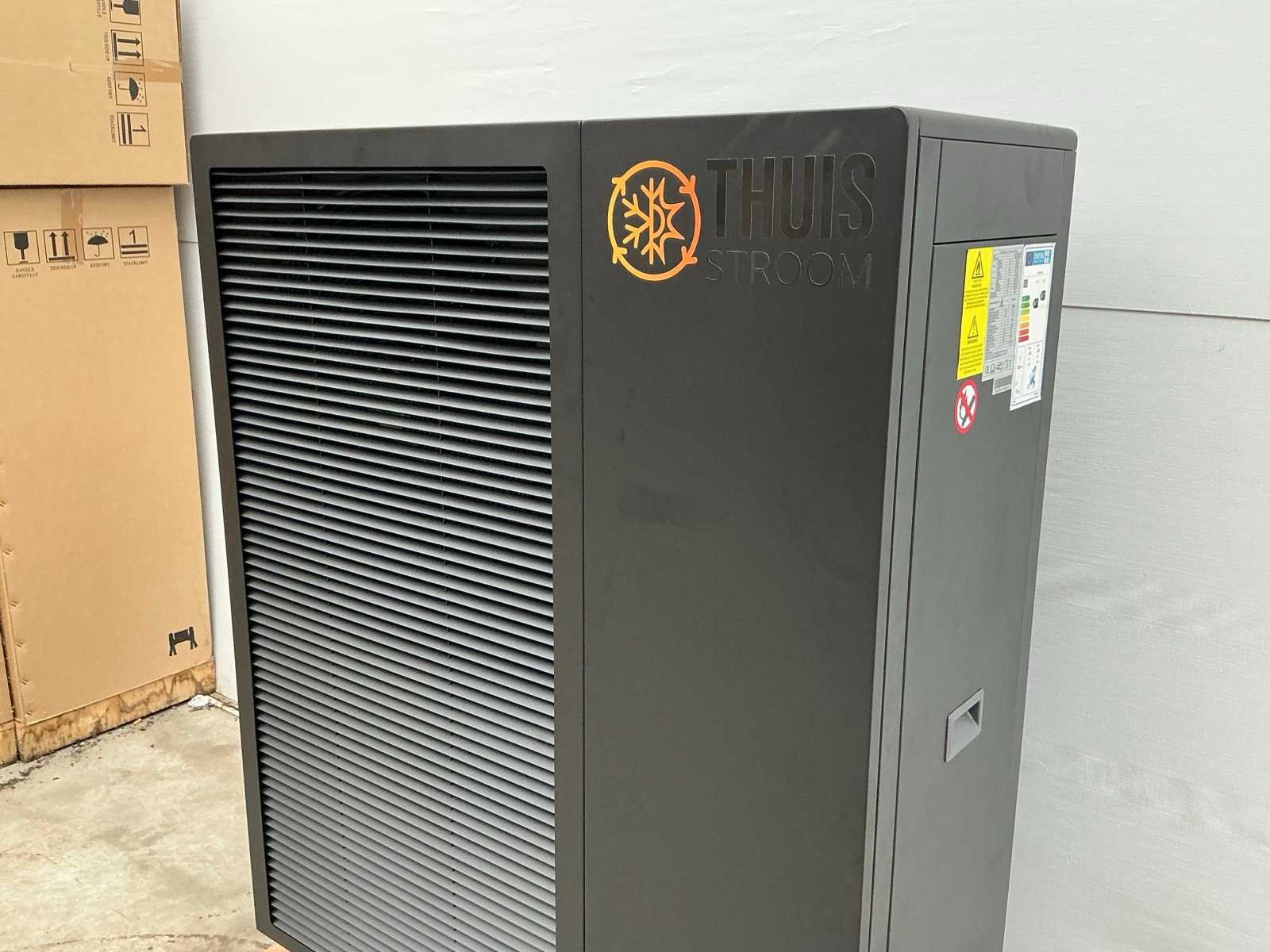 Serienummer: 8A00230130003576. Dit betreft een verpakte unit. R290 refrigerant gas Energy Class: A++++ Heating + Cooling + Hot Water Full DC inverter compressor and fan motor Max outlet temperature: 70 O Wifi smart control Inverter water pump inside Modbus RS485 Full DC Inverter Technology Merk: Thuisstroom Model: TS-HP18-290T-VS01 Kleur: Zwart Lengte: 121cm Breedte: 54cm Hoogte: 146cm