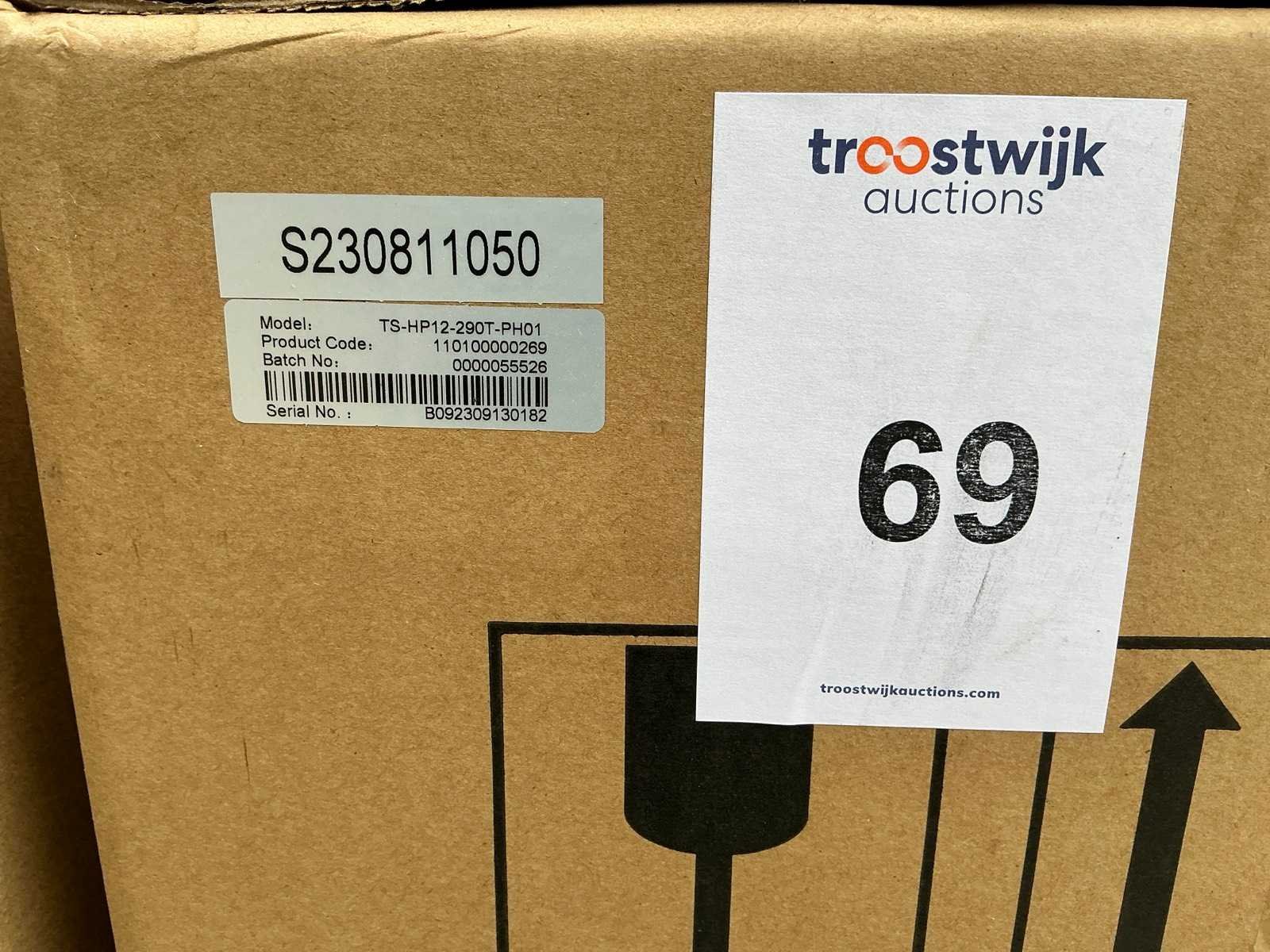 Serienummer: B092309130182. Dit betreft een verpakte unit. R290 refrigerant gas Energy Class: A++++ Heating + Cooling + Hot Water Full DC inverter compressor and fan motor Max outlet temperature: 70 O Wifi smart control Inverter water pump inside Modbus RS485 Full DC Inverter Technology Merk: Thuisstroom Model: TS-HP12-290T-PH01 Kleur: Zwart Gewicht: 175kg Lengte: 141cm Breedte: 52cm Hoogte: 96cm Materiaal: Metaal