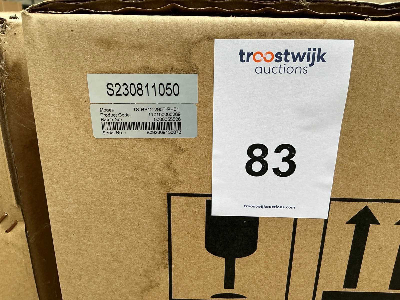 Serienummer: B092309130073. Dit betreft een verpakte unit. R290 refrigerant gas Energy Class: A++++ Heating + Cooling + Hot Water Full DC inverter compressor and fan motor Max outlet temperature: 70 O Wifi smart control Inverter water pump inside Modbus RS485 Full DC Inverter Technology Merk: Thuisstroom Model: TS-HP12-290T-PH01 Kleur: Zwart Gewicht: 175kg Lengte: 141cm Breedte: 52cm Hoogte: 96cm Materiaal: Metaal