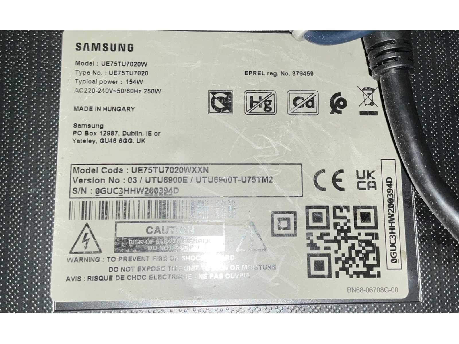 Inclusief wandgemonteerde beugel; Merk: Samsung Type: UE75TU7020 Beelddiagonaal: 75''