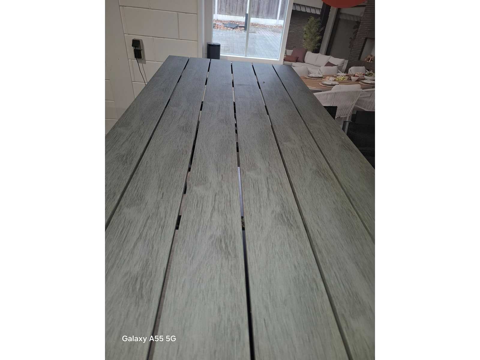 Het blad is gemaakt van duurzaam polywood, een kunststof materiaal met de warme look van echt hout. Het frame is gemaakt van stevig aluminium met een matzwarte poedercoating, waardoor de tafel niet alleen licht in gewicht is, maar ook bestand tegen verschillende weersomstandigheden. Model: Cyprus Vorm: Rechthoekig Kleur: Grey Lengte: 200cm Breedte: 75cm Hoogte: 105cm Materiaal: Polywood/Aluminium