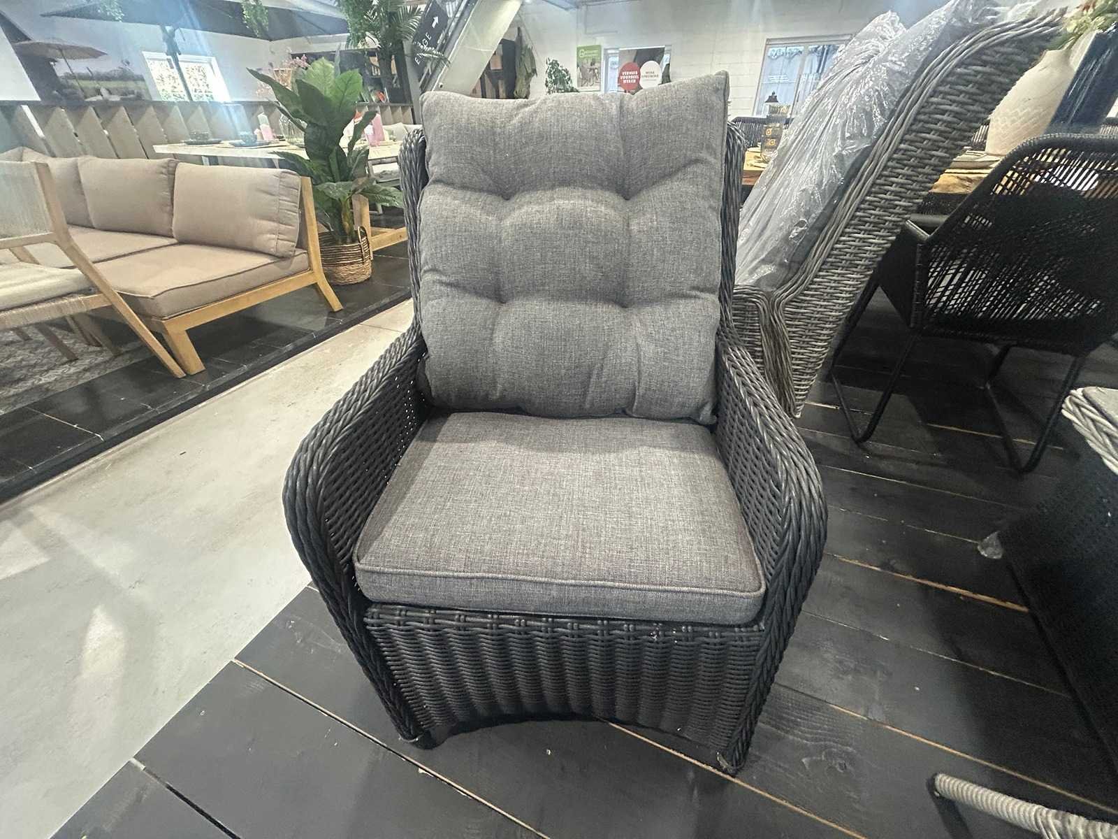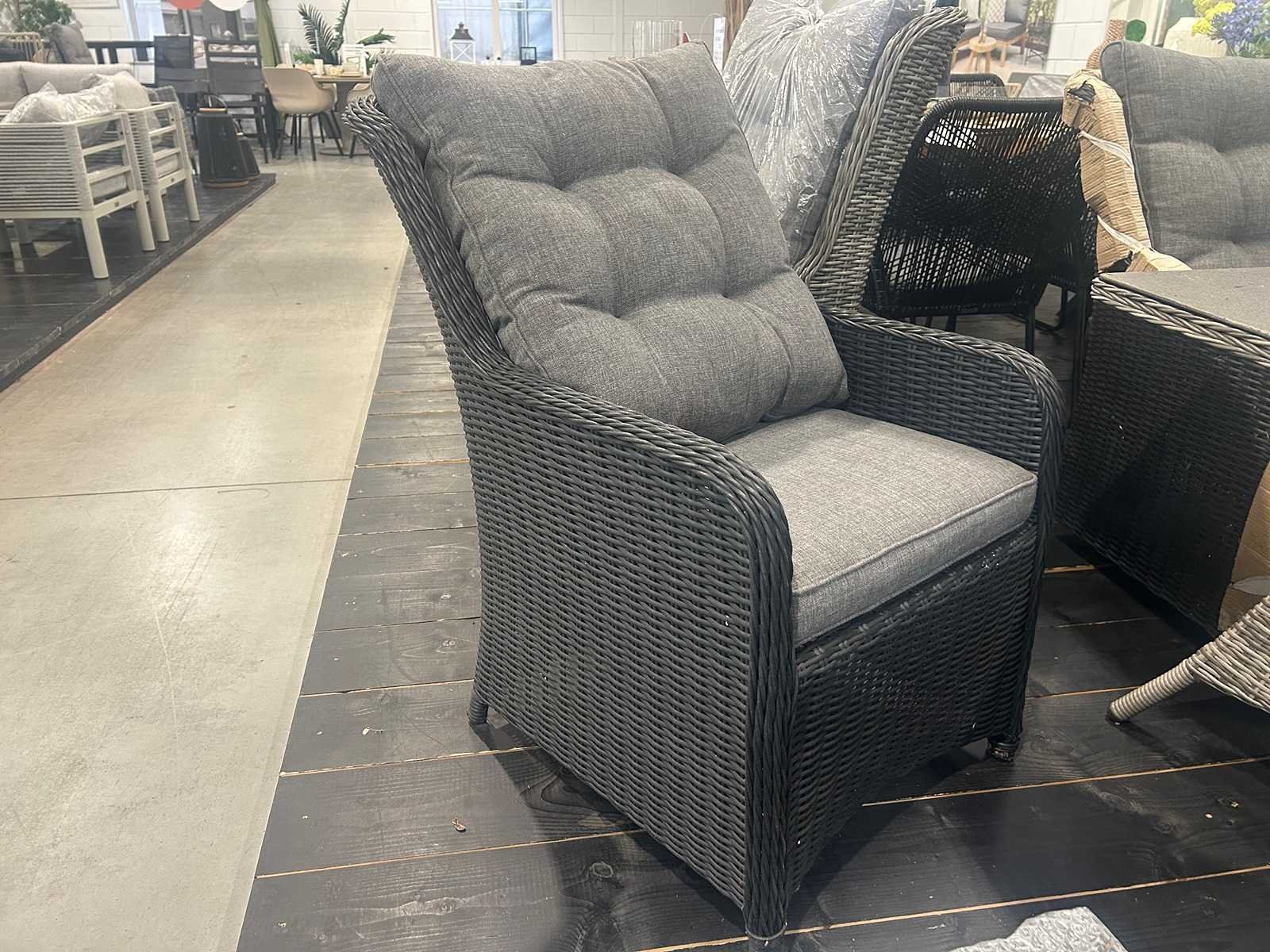 Deze comfortabele stoel is vervaardigd uit een combinatie van halfrond en rond wicker op een stevig aluminium frame, waardoor hij zowel duurzaam als onderhoudsvrij is. Het gebruik van hoogwaardige materialen maakt de stoel geschikt om het gehele jaar buiten te staan, zonder dat je je zorgen hoeft te maken over weersomstandigheden. Model: Dublin Kleur: Black Breedte: 60cm Hoogte: 95cm Zithoogte: 42 Materiaal: Aluminium & kunststof vlechtwerk