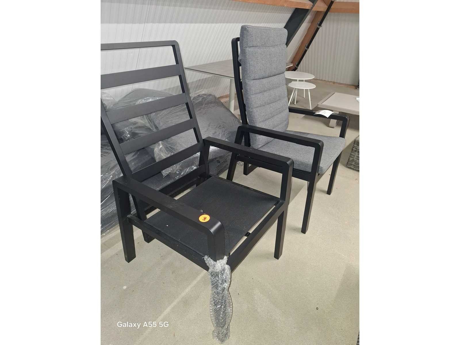 De verstelbare tuinstoel Berlijn in de kleur Black en Grey is gemaakt van hoogwaardig gepoedercoated aluminium. Deze tuinstoel is een combinatie van comfort en stijl voor jouw buitenruimte. De stoel heeft een stevig aluminium frame in een moderne zwarte kleur. De Berlijn tuinstoel biedt ultiem zitcomfort dankzij de hoge rugleuning en de verstelbare functie, waarmee je eenvoudig de gewenste zitpositie kunt kiezen, of je nu wilt dineren of lekker achterover wilt leunen. Let op: Exclusief tuinkussens. Extra handig; de Berlijn stoel is ook stapelbaar zodat je hem gemakkelijk op kan bergen. Model: Berlijn Kussens: false Verstelbaar: true Kleur: Black/Grey/Antraciet Breedte: 60cm Hoogte: 110cm Zithoogte: 51 Materiaal: Aluminium