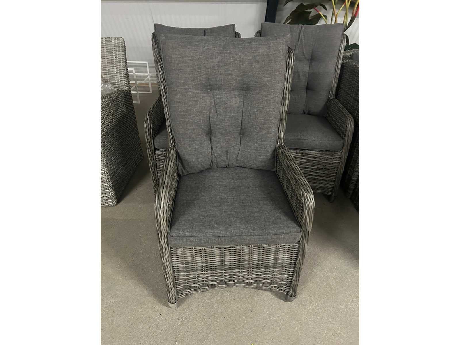 De stoel is uitgerust met een grijs zit- en rugkussen, die zowel afritsbaar als uitwasbaar zijn voor eenvoudig onderhoud. Dankzij het gebruik van duurzame materialen is deze stoel onderhoudsvrij en bestand tegen de elementen, waardoor hij het hele jaar door buiten kan staan, ongeacht het weer. De stoel is tevens voorzien van een gasveer waarmee je de positie eenvoudig kunt aanpassen. Afbeelding kan afwijken van het orgineel. Merk: Wicker Product type: Verstelbare Kussens: true Verstelbaar: true Kleur: Mystic Grey Breedte: 60cm Hoogte: 105cm Zithoogte: 45 Materiaal: Aluminium en kunststof vlechtwerk
