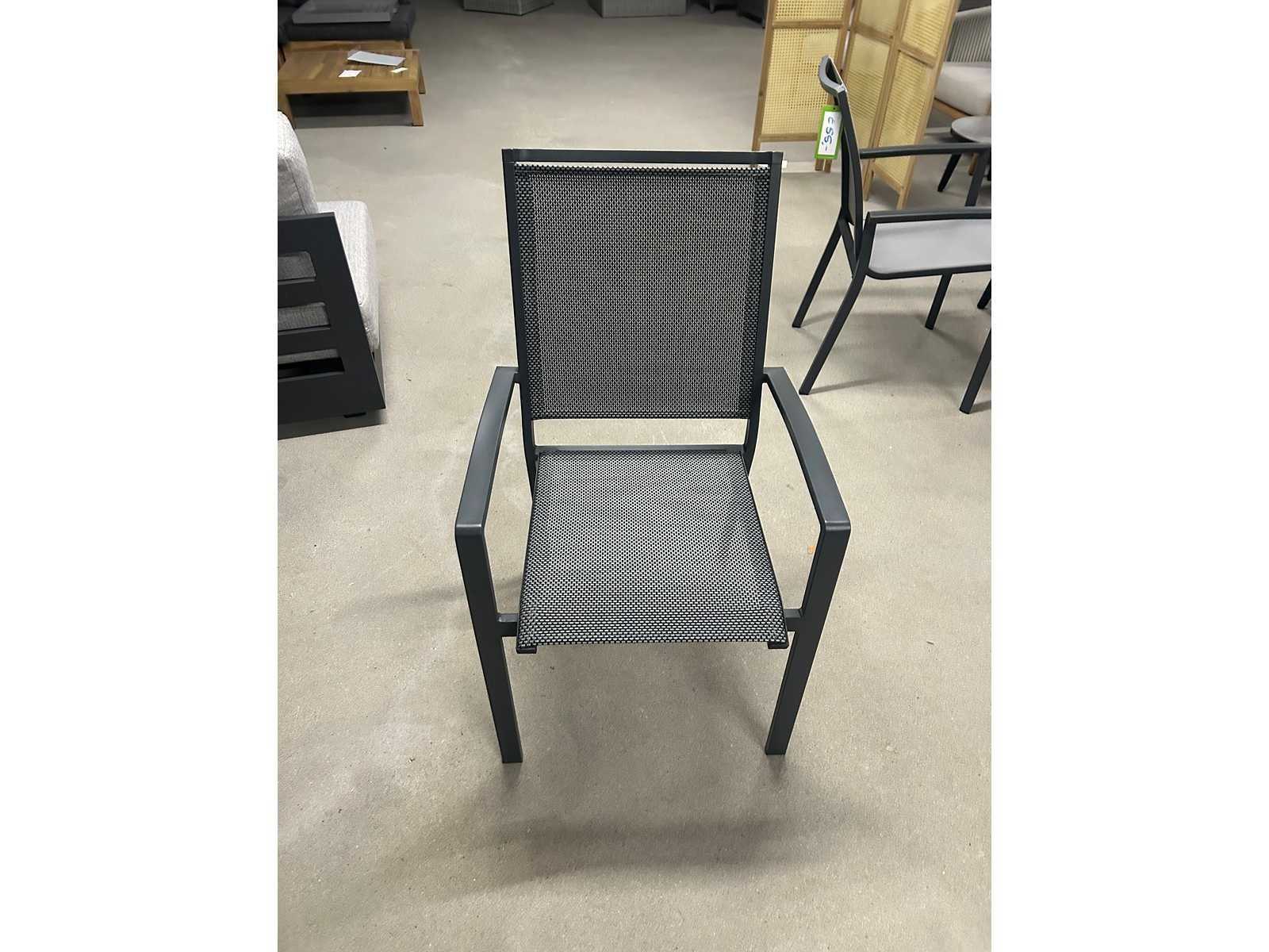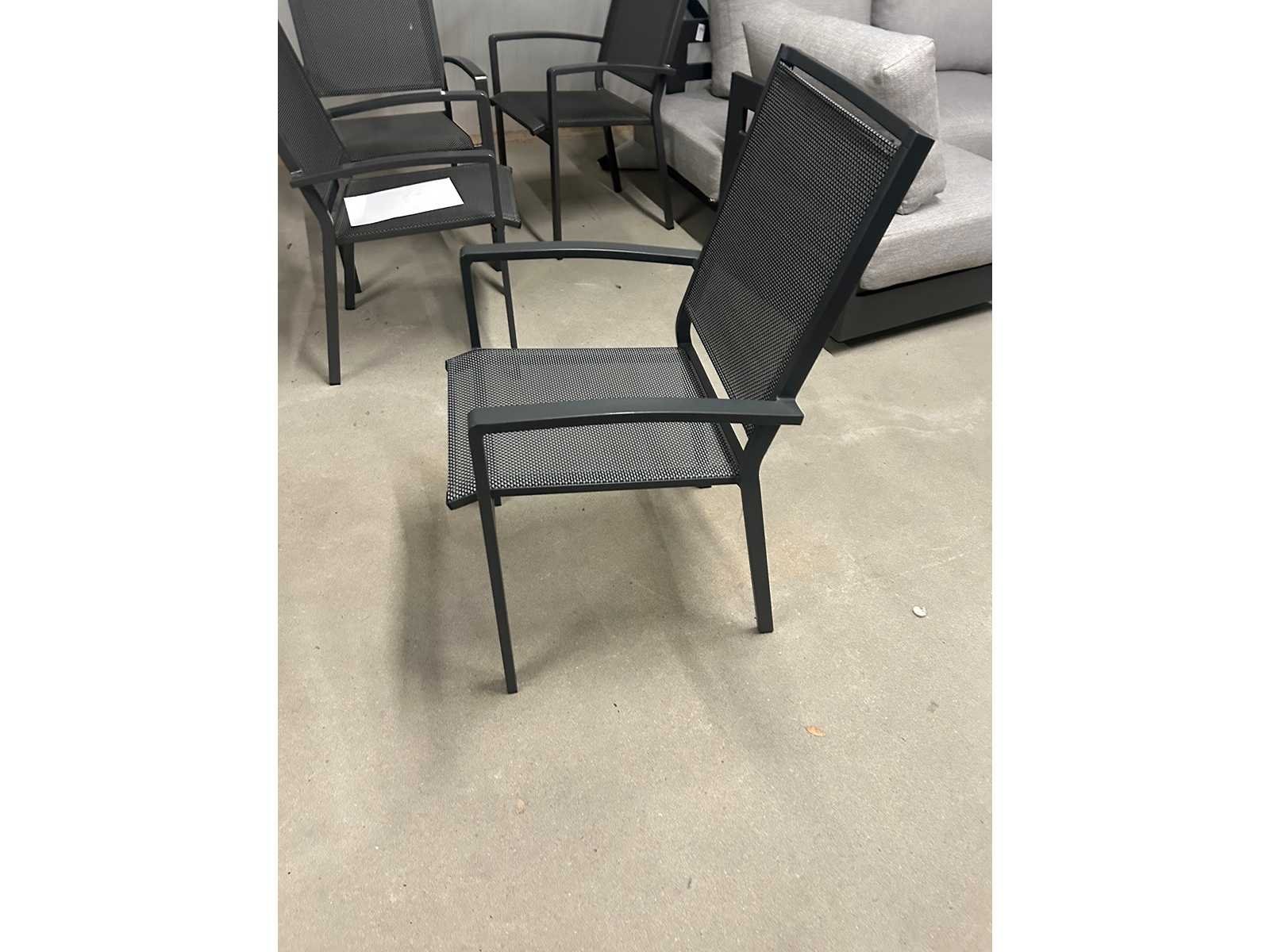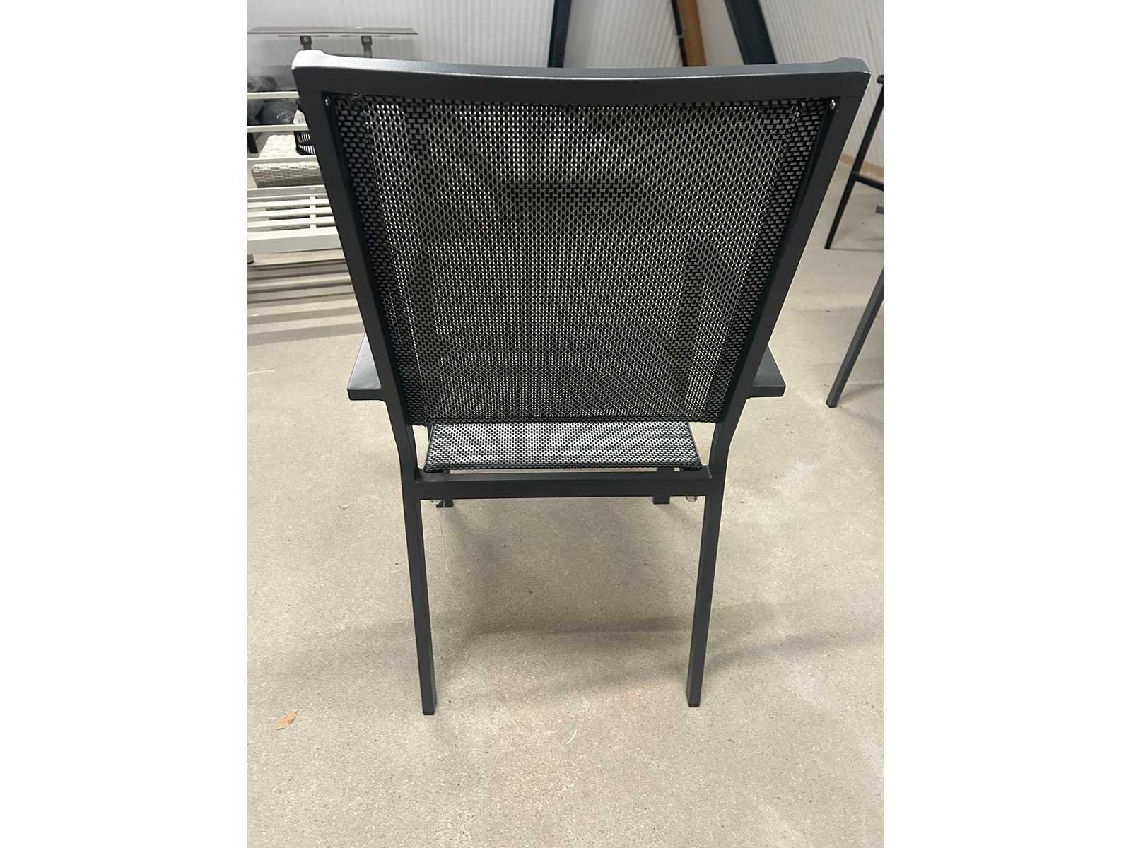 De stapelstoel Mojito negro is een moderne stoel van duurzaam materiaal. Hij komt in de kleur donkergrijs en de zitting en rugleuning zijn van textileen. Deze terrasstoel is stevig en heeft een tijdloos design. De stapelbare terrasstoelen zijn licht van gewicht en kunnen makkelijk worden verplaatst en nemen weinig opbergruimte in. Een textileen rug leuning heeft als grote voordeel dat het snel droog is na een regen bui en erg sterk is, zo staat deze stoel garant voor jarenlang plezier! Product type: Mojito Kleur: Antraciet Breedte: 55cm Hoogte: 94cm Zithoogte: 44 Materiaal: Aluminium en textileen