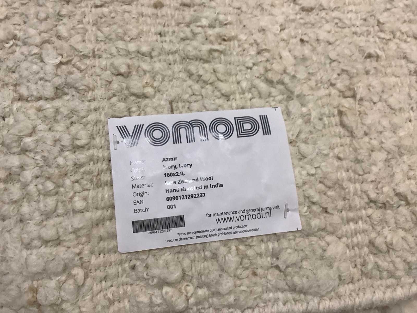 Dit betreft een nieuw vloerkleed. 160x230cm. Merk: VOMODI Model: Azmir Ivory Ivory Lengte: 230cm Breedte: 160cm Materiaal: Wol