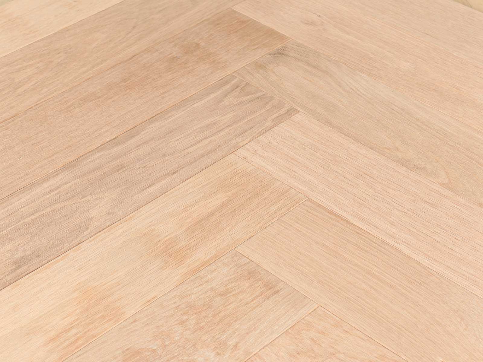 Mes en groef systeem, geschikt voor alle soorten vloer en koelverwarmingen, onbehandeld visgraat, kwaliteits parketvloer, vloer is van hoogwaardig Europees eiken hout, dikte 12,7 mm, 174 pakken a 0,583 m2 Merk: Select floor Product type: Parket Oppervlakte: 101m² Geschikt voor vloerverwarming: Ja V-groef: Ja Afwerking: Onbehandeld, rustiek, gerookt, met v-groef Aantal m² per verpakking: 0.583m² Kleur: Light brushed unfinished 322HB Gewicht: 1045kg Lengte: 540mm Breedte: 90mm Materiaal: Eiken multiplank