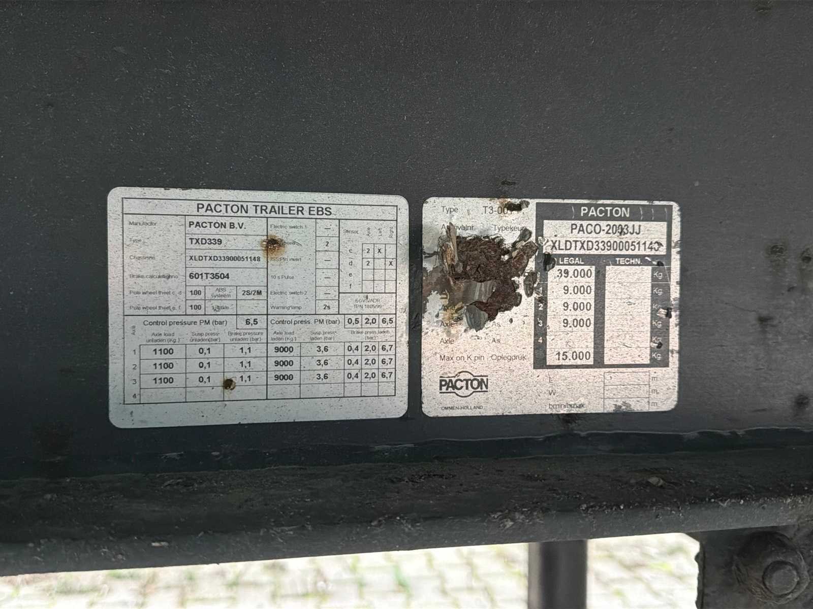 Merk: Pacton Type: TXD339 Kenteken: OH-20-TJ Datum eerste toelating (NL): 2005-02-01 Datum eerste toelating: 2005-02-01 APK vervaldatum: 2026-02-09 Laadvermogen: 32400kg
