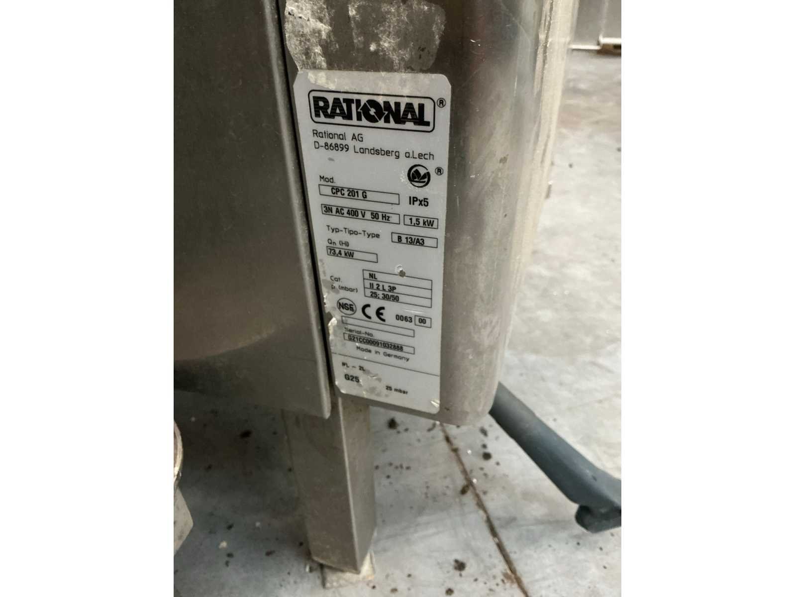 Gasgestookt Merk: Rational Type: CPV201G Vermogen: 1500W Aansluiting: 400V Serienummer: G21CC00091032888 Digitale besturing: true Gas: true Rvs: true Totale afmeting L: 103cm Totale afmeting Breedte: 86cm Totale afmeting Hoogte: 200cm