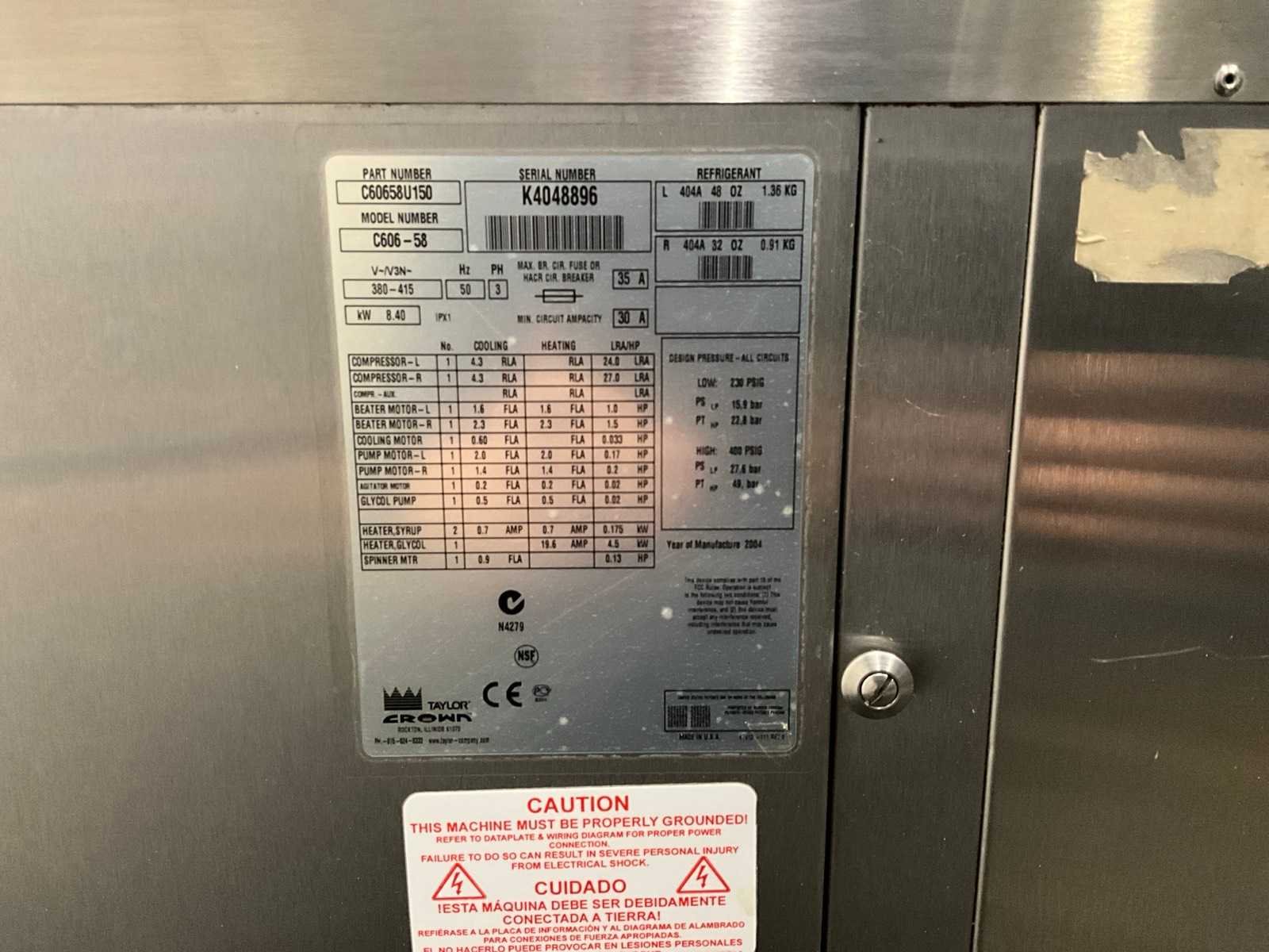 Diverse onderdelen ontbreken Merk: Taylor crown Type: C606-58 Materiaal: RvS Serienummer: K4048896 Aansluiting: 400V Rvs: true Totale afmeting L: 99cm Totale afmeting Breedte: 64cm Totale afmeting Hoogte: 150cm Bouwjaar: 2004