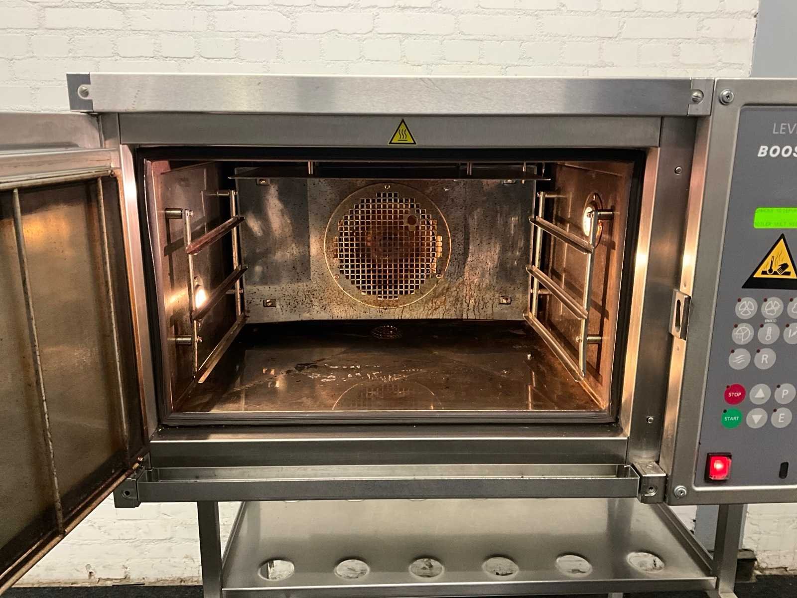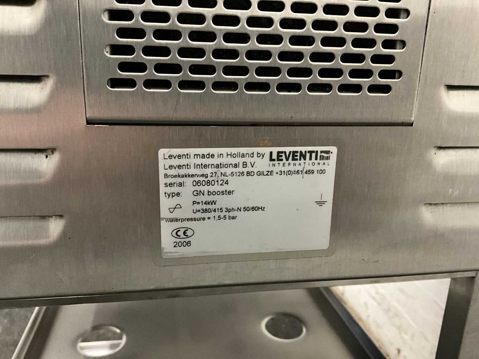 Merk: Leventi Type: GN Booster Materiaal: Rvs Digitale besturing: true Serienummer: 06080124 Aansluiting: 400V Elektrisch: true Rvs: true Vermogen: 14kW Totale afmeting L: 66cm Totale afmeting Breedte: 97cm Totale afmeting Hoogte: 146cm Bouwjaar: 2006 Met onderstel: true