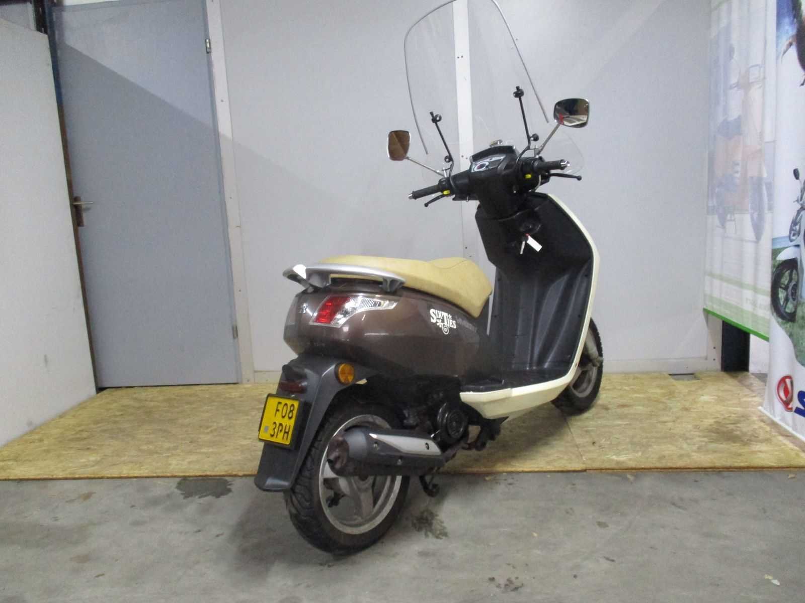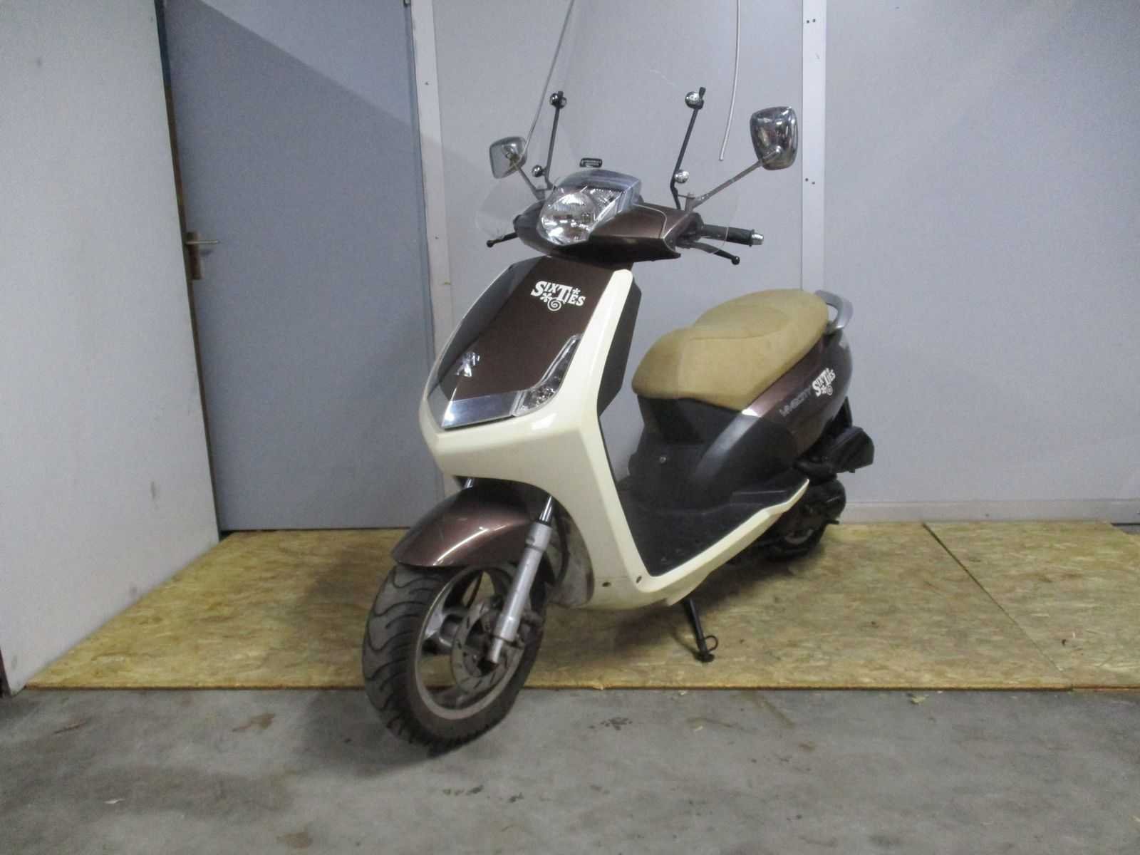 Bromscooter met 2 sleutels inclusief hoog windscherm, 1 ste eigenaar. Motor loopt, scooter heeft enige tijd stilgestaan, midden bok gaat wat zwaar erop. Verdere staat van onderhoud onbekend. Merk: Peugeot Model: Bromscooter Type: New Viva City sixties 4T Handelsbenaming: VIVACITY Snelheid: 45km/h Kenteken: F-083-PH Datum eerste toelating: 2013-06-12 Bouwjaar: 12-06-2013 Transmissie: Aut. Brandstof: benzine Kleur: niet van toepassing Afgelezen kilometerstand: 8298km