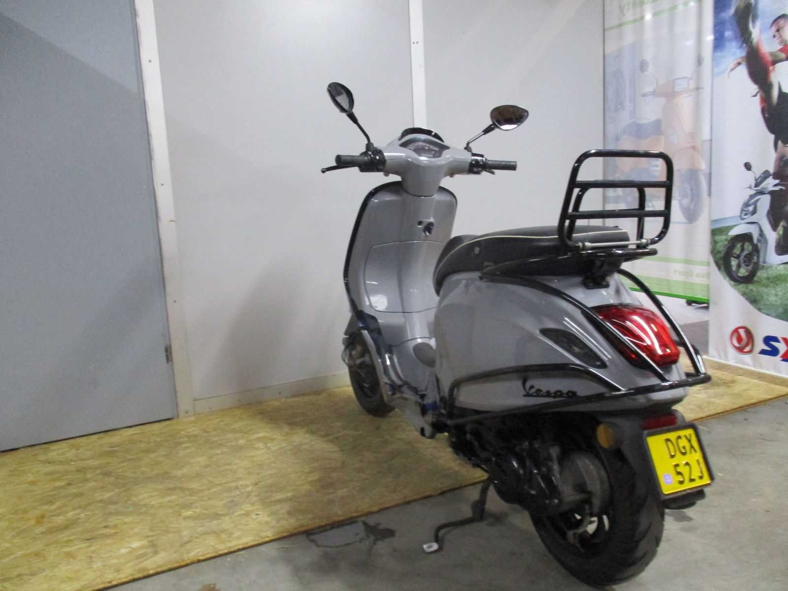 Bromscooter met 1 sleutel inclusief dagrijverlichting, achter klaprek en achter zijbeugelset. Scooter met (blik) schade, motor loopt. Scooter nog rijdbaar. Merk: Vespa Model: Bromscooter Type: Sprint 4T Handelsbenaming: VESPA SPRINT Snelheid: 45km/h Kenteken: DGX-52-J Datum eerste toelating: 2017-01-24 Bouwjaar: 24-01-2017 Transmissie: Aut. Brandstof: benzine Kleur: niet van toepassing Afgelezen kilometerstand: 36523km