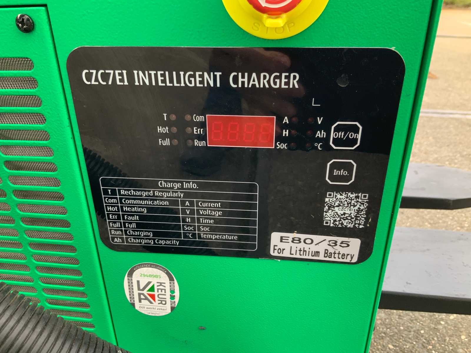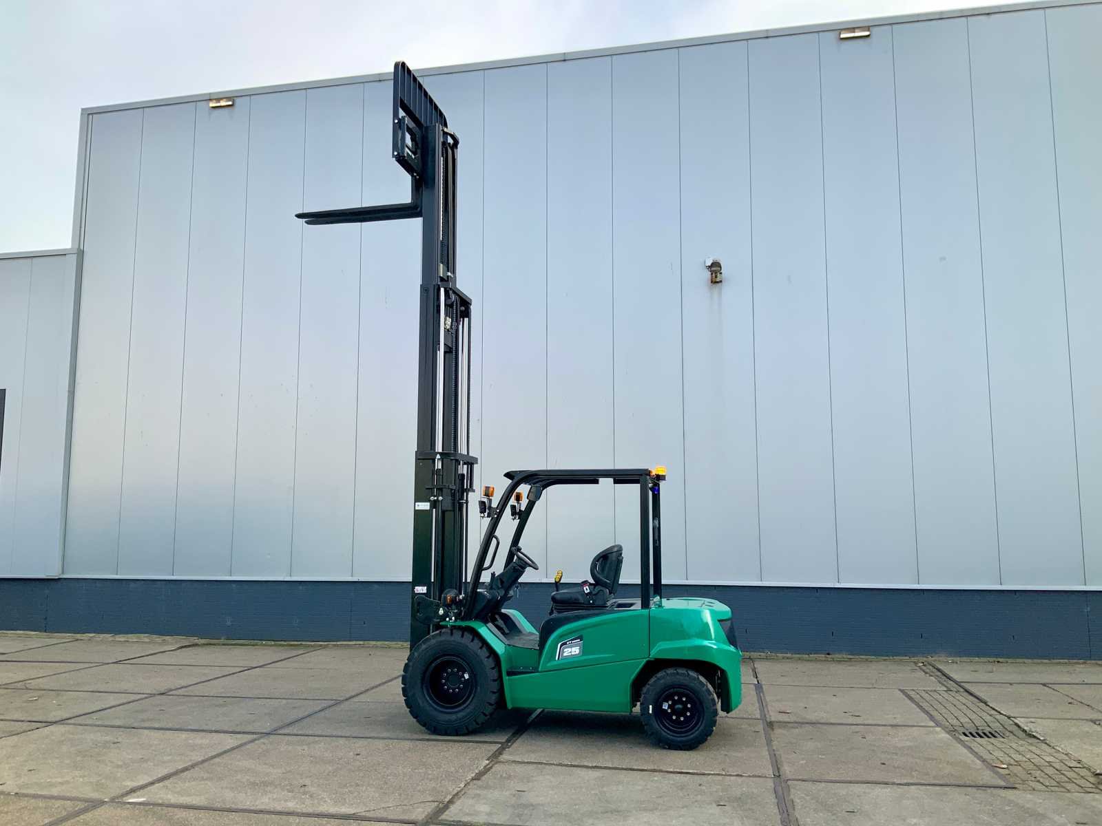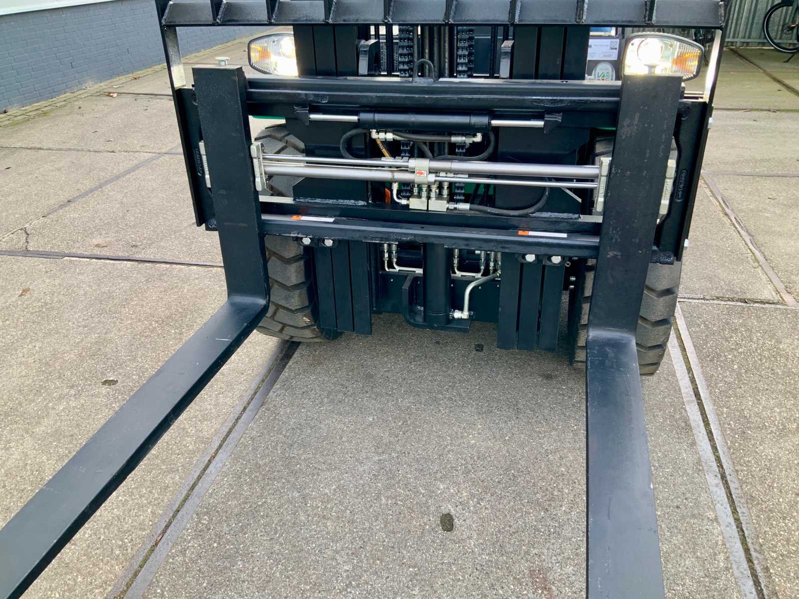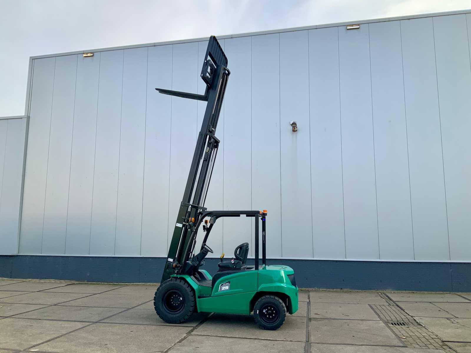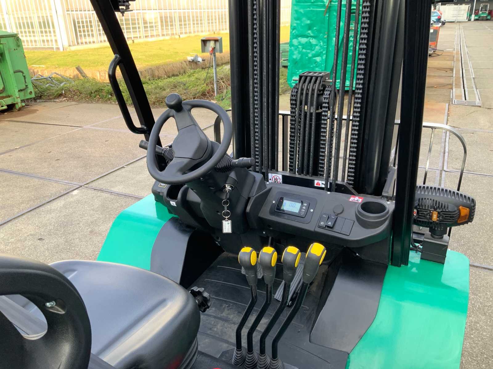 Deze truck is nieuw en ongebruikt en voorzien van een lithium Ion batterij en deze batterij kunt u op elk moment/tussentijds laden zonder nadelige gevolgen. Met CE conformiteit documenten voor het aanvragen van een kentekenregistratie bij de autoriteiten van uw land, met led rijverlichting voor en achter, Bluespot en zwaailamp. Onderhoudsarme Lithium Ion batterij 80V/350AH. Merk: Manforce Type: R2B25-LI Bouwjaar: 2025 Serienummer: YK2572503019 Brandstof: Elektrisch Mast: Triple Soort band: Luchtbanden Aantal wielen: 4 Afgelezen urenstand: 13 Ruw terrein: true Accu lader: true Free-lift: true Side-shift: true Hydraulisch verstelbare lepels: true Triple mast: true Eigen gewicht: 4360kg Hefvermogen: 2500kg Lepellengte: 1230mm Max. hefhoogte: 4700mm Luchtbanden: true Minimale doorrijhoogte: 2120mm Totale afmeting L: 4100mm Totale afmeting Breedte: 1450mm Totale afmeting Hoogte: 2120mm