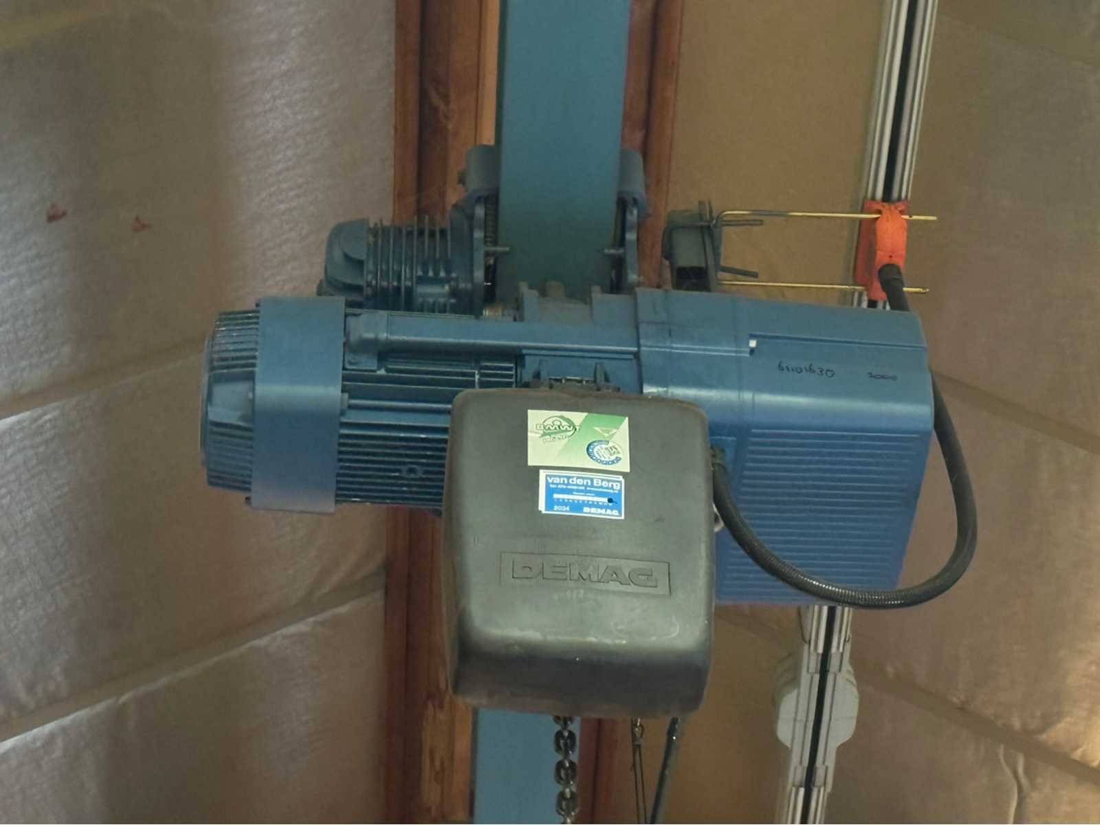 Met 45000 mm kraanbaan; van IPE staal; wordt gedemonteerd en transport klaar gemaakt door verkoper; kijkdag en afhalen op afspraak; afhalen in overleg; maart; april 2026; kijkdag en afhalen is in Groot-Ammers Merk: Demag Type: 1 Tons Hijsvermogen: 1000kg Max. hijshoogte: 6000m Met kraanbalk: true
